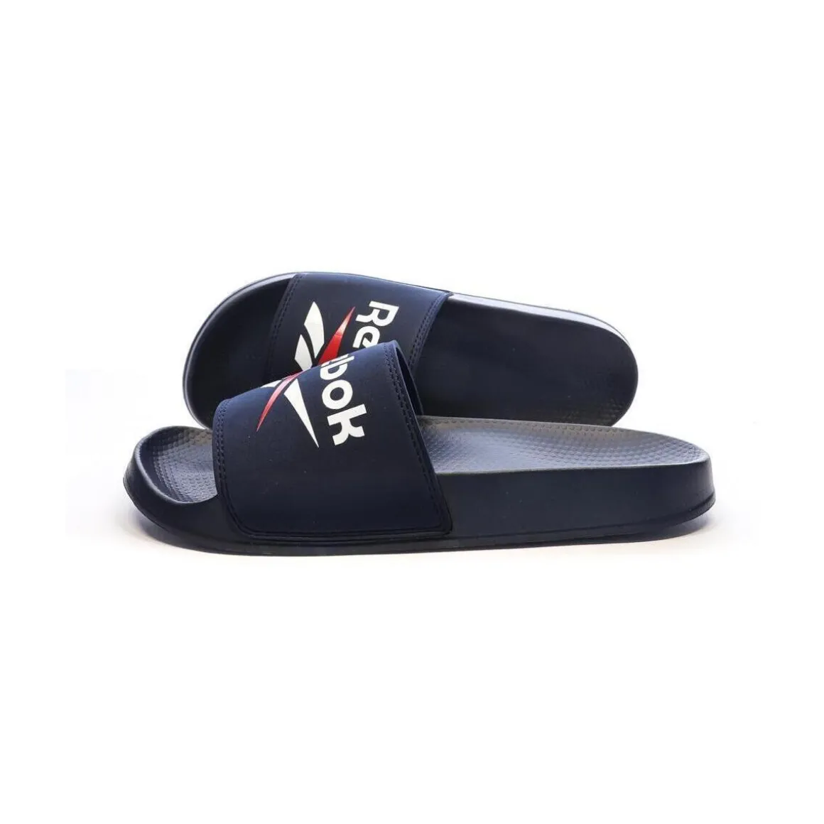 Optez pour ces claquettes Reebok Coloris : Marine, RougeSemelle caoutchoucLogo Reebok Épaisseur de la semelle :3 cm