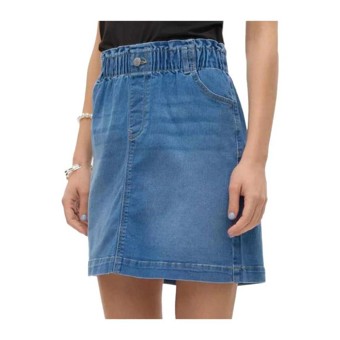 Optez pour cette jupe de la marque Vero ModaColoris : BleuComposition : 79% Coton 20% Polyester 1% ÉlasthannePoches avant, Poches arrièreFermeture par bouton, Fermeture éclair