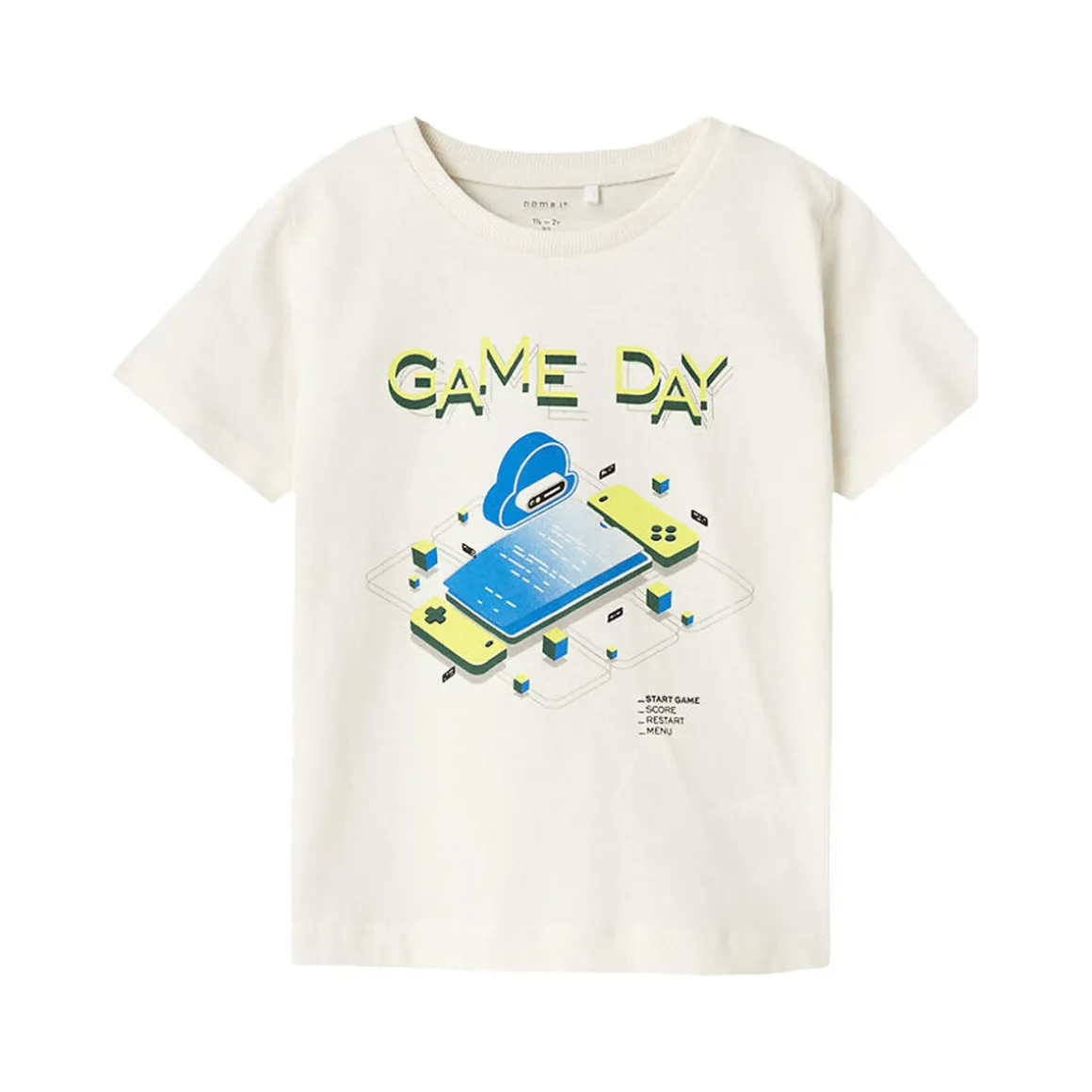 Optez pour ce t-shirt de la marque Name ItColoris : blanc, bleu, jauneCol rondManches courtesComposition : 100% coton