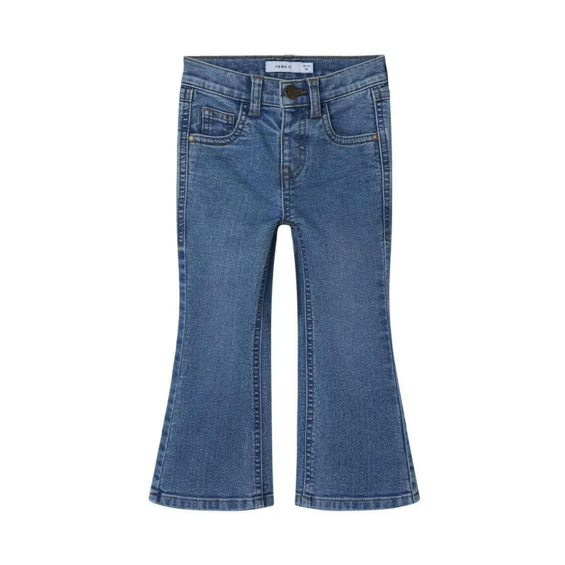 Optez pour ce jean Name itColoris : Bleu Medium Composition : 78% Coton, 21% Polyester recyclé, 1% ÉlasthanneCoupe bootcutBraguette zippée surmontée d’une agrafe et d’un bouton