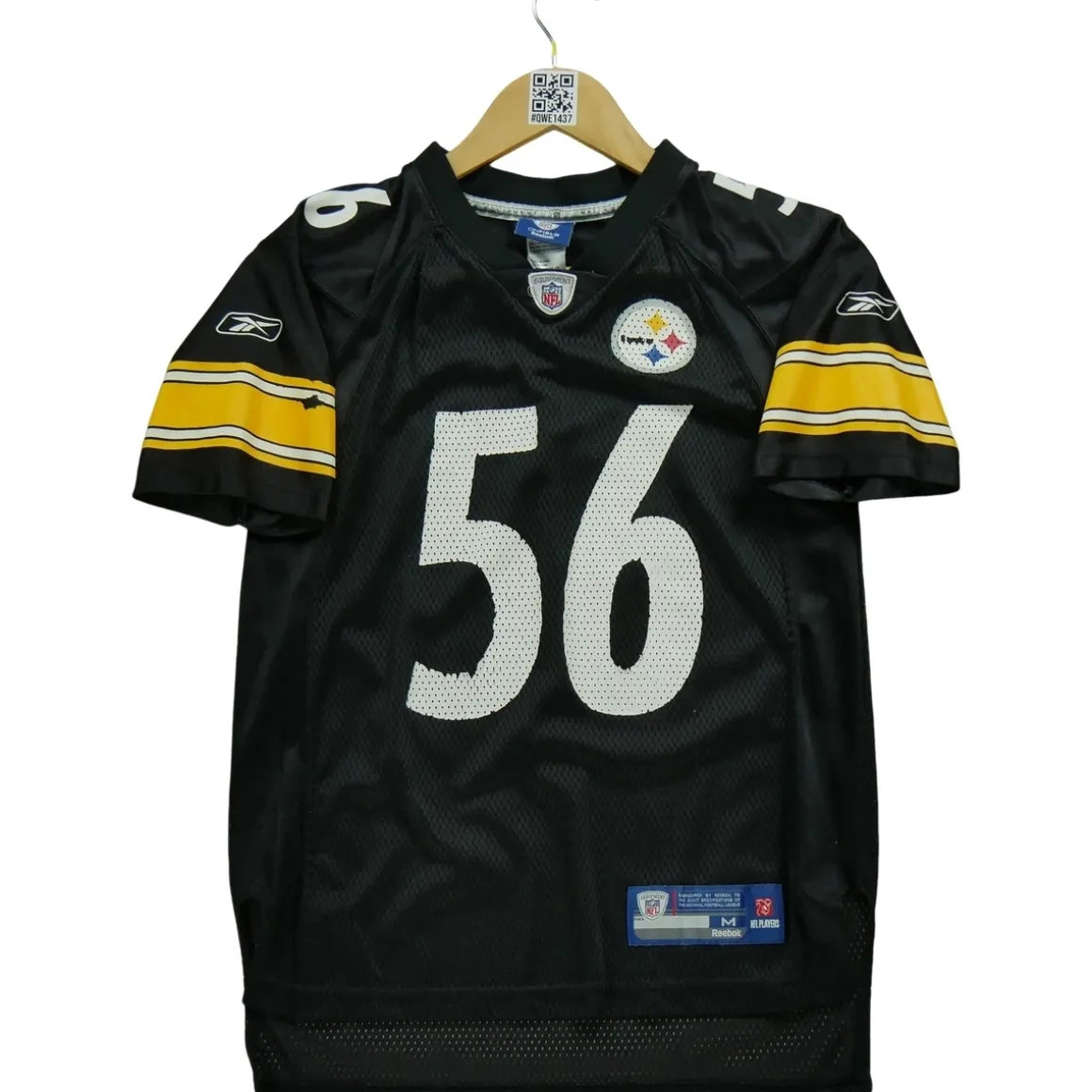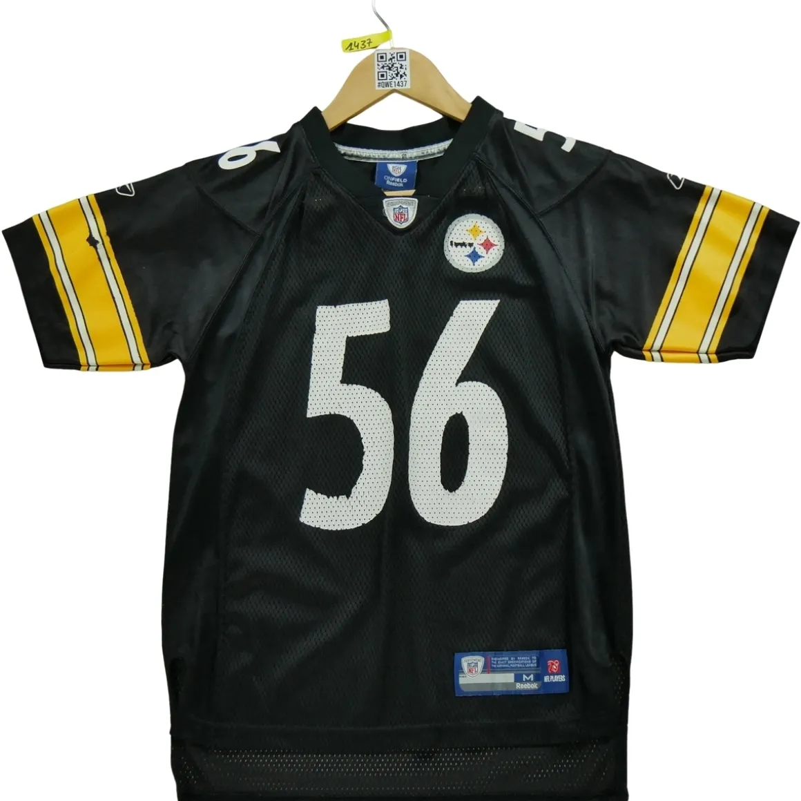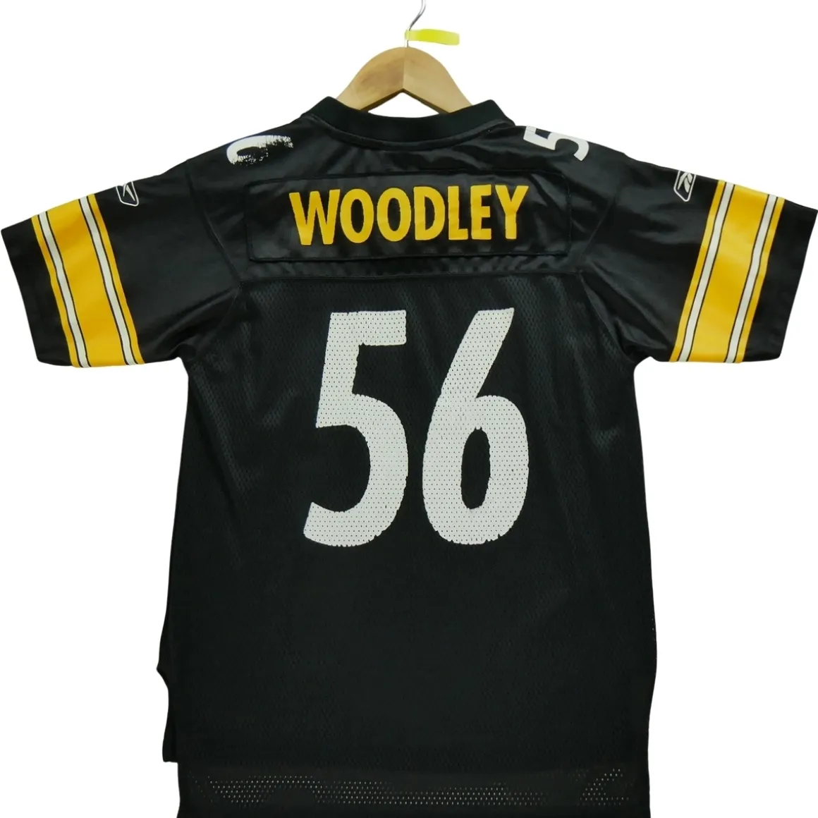 En choisissant un vêtement de seconde main, vous faites un geste pour l’environnement en prolongeant la durée de vie d’un produit déjà existant. C’est une démarche éco-responsable et économique. POURQUOI CHOISIR UN PRODUIT DE SECONDE MAIN ? Opter pour un vêtement de seconde main, c’est faire le choix d’une consommation plus responsable. En donnant une seconde vie à un produit déjà existant, vous participez à la réduction du gaspillage et de la surproduction. De plus, c’est souvent une solution plus économique pour acquérir des vêtements de qualité. NOTRE ENGAGEMENT QUALITÉ Nous sommes fiers de vous proposer des vêtements de seconde main en excellent état. Chacun de nos produits a été minutieusement vérifié et nettoyé par nos experts pour vous garantir une qualité irréprochable. Nous sommes à votre disposition pour répondre à toutes vos questions et vous aider à trouver le produit qui correspond le mieux à vos besoins et à votre budget. CONCLUSION Ce maillot femme NFL Pittsburgh Steelers de la marque Reebok en taille 10/12 ans est un vêtement de seconde main en excellent état, vérifié et nettoyé par nos experts. En l’achetant, non seulement vous soutenez votre équipe favorite avec style, mais vous faites aussi un geste pour l’environnement. Opter pour un vêtement de seconde main, c’est choisir la qualité, l’économie et la durabilité. N’hésitez pas à nous contacter pour toute question supplémentaire concernant ce produit. Remarques : imperfections signalées par les flèches