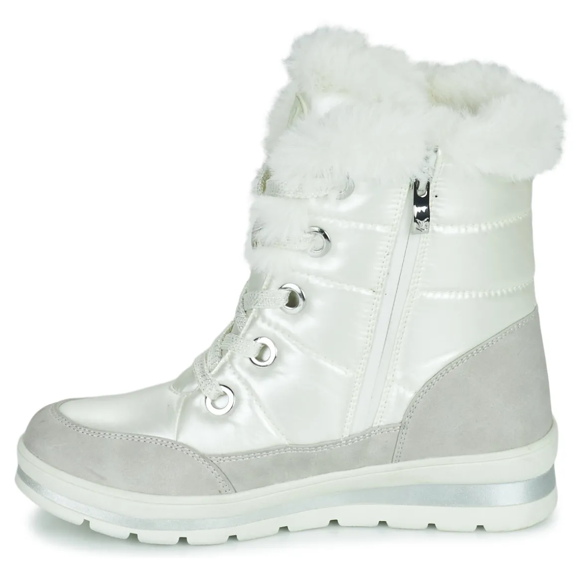 Chaude et douillette, la botte de neige 26226 de la marque Caprice accompagnera toutes vos journées hivernales. Sa tige imperméable blanche en synthétique et textile lui permet d’apporter une bonne protection et le confort qui va avec. Grâce à sa semelle antidérapante en synthétique, le verglas et la neige passeront de terrains dangereux à terrains de jeux !