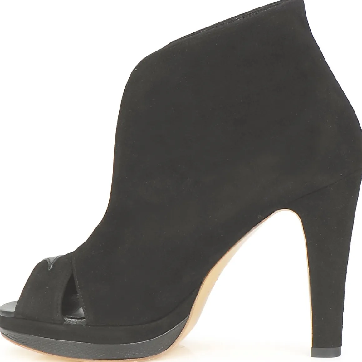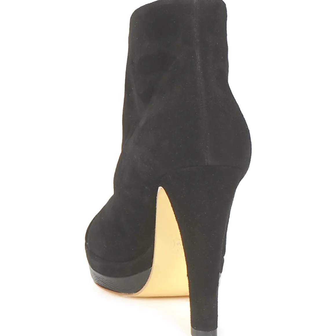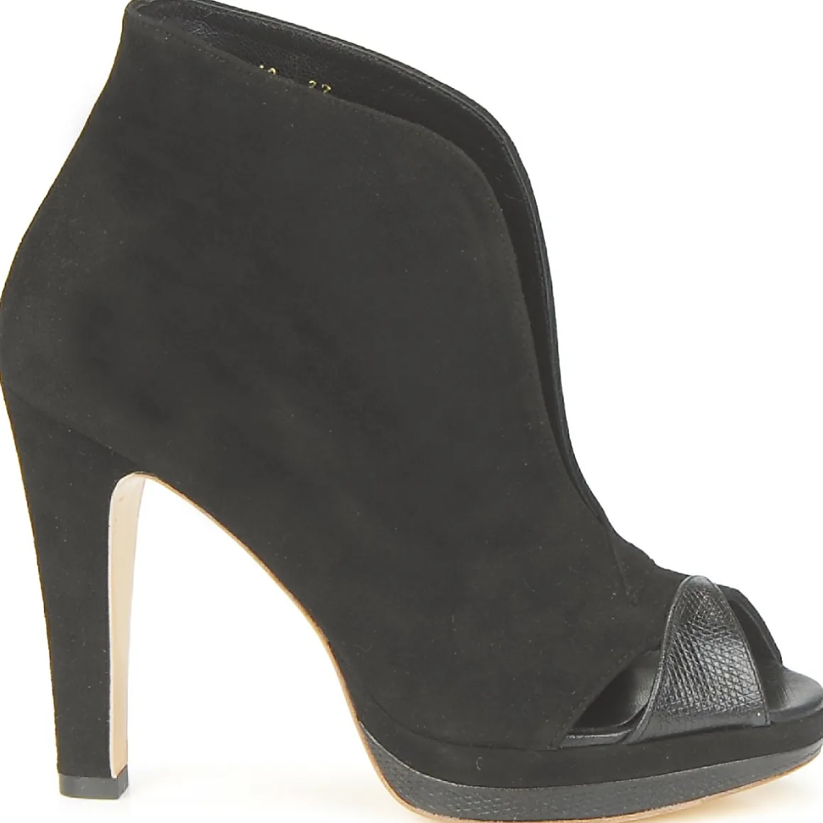 Low Boots Gaspard Yurkievich en cuir de veau velours. Avant-pied ajouré avec empiècement en simili serpent. Décolleté prononcé sur le cou-de-pied. Semelle patinée dorée, symbole des collections Urban & Contemporary de la maison avec film protecteur à ôter