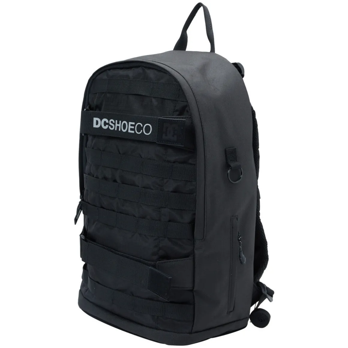 Sac à dos pour Homme. Les caractéristiques produit sont les suivantes : Matière: Polyester recyclé 600D et doublure en polyester recyclé, Matière contrastée : Polyester Ripstop, Grand compartiment principal avec fermeture à zip, Poche intérieure avec organisateur, Pochette intérieure rembourrée et surélevée pour ordinateur portable, Dos rembourré, Bretelles matelassées réglables en haut et en bas, Boucles de sangle sur toute la longueur, Système de réglage par boucle sur la poitrine, Petite étiquette logo tissée au centre de l’avant, Poignée latérale sur le côté gauche de l’utilisateur, Impression gel DC Shoe Co et logo DC en relief sur la lanière du patin., Dimensions : 19.7″h x 12″w x 5.5″ d / 50 cm x 31 cm x 14 cm et Volume : 23 L.