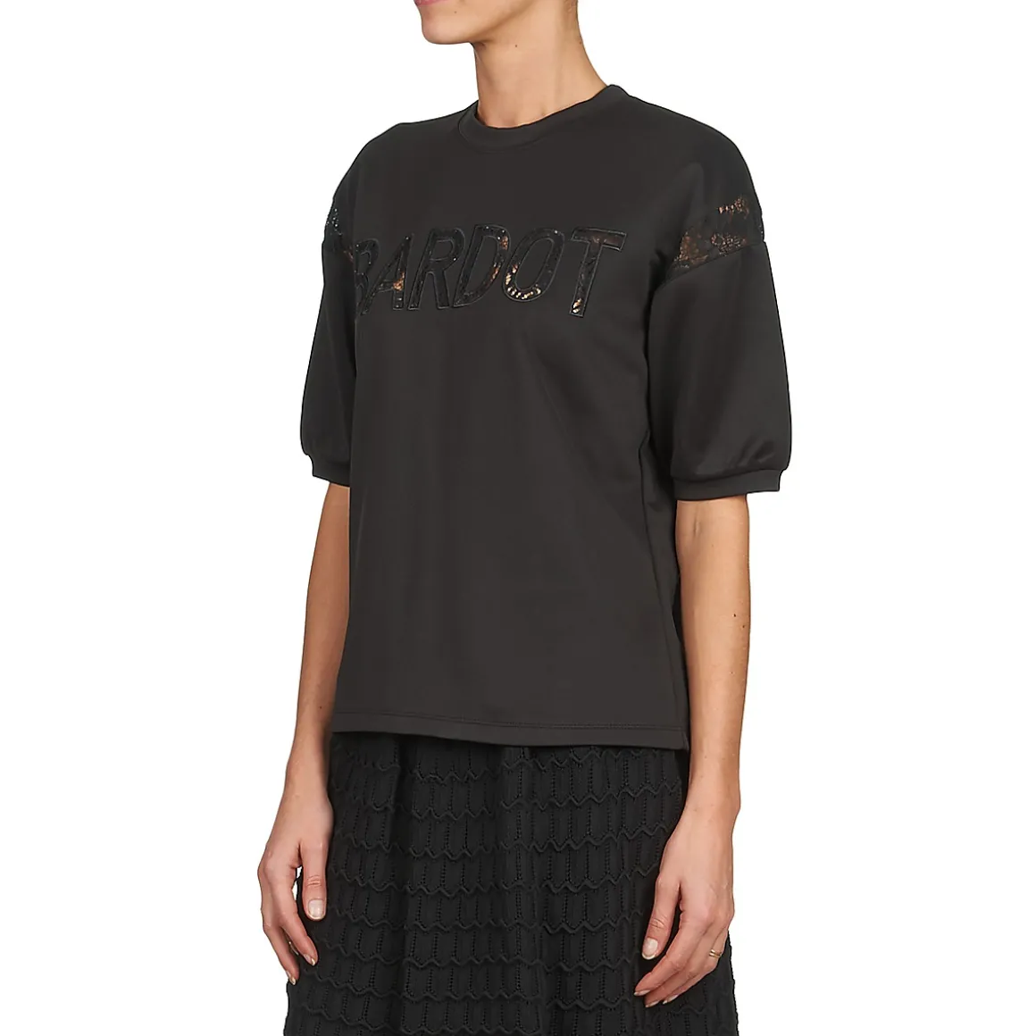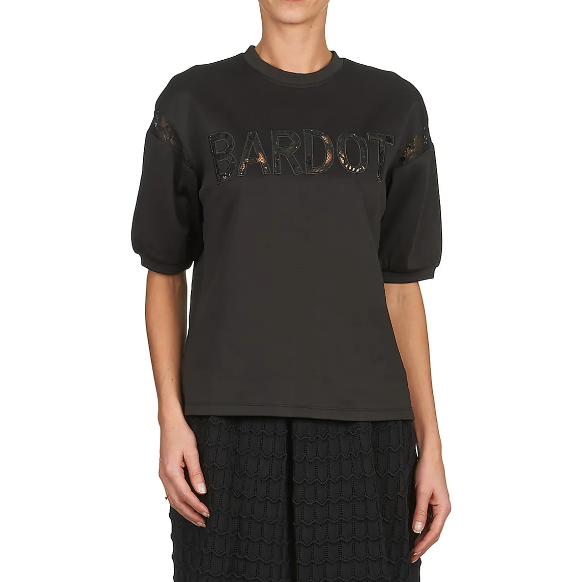 Le sweat reprend du service cette saison et cette version noire en est sa meilleure représentation trendy.Une fois n’étant pas coutume, la griffe Brigitte Bardot l’a doté de manches courtes.Laissez-vous tenter par son style un brin sportswear et son porté confortable.