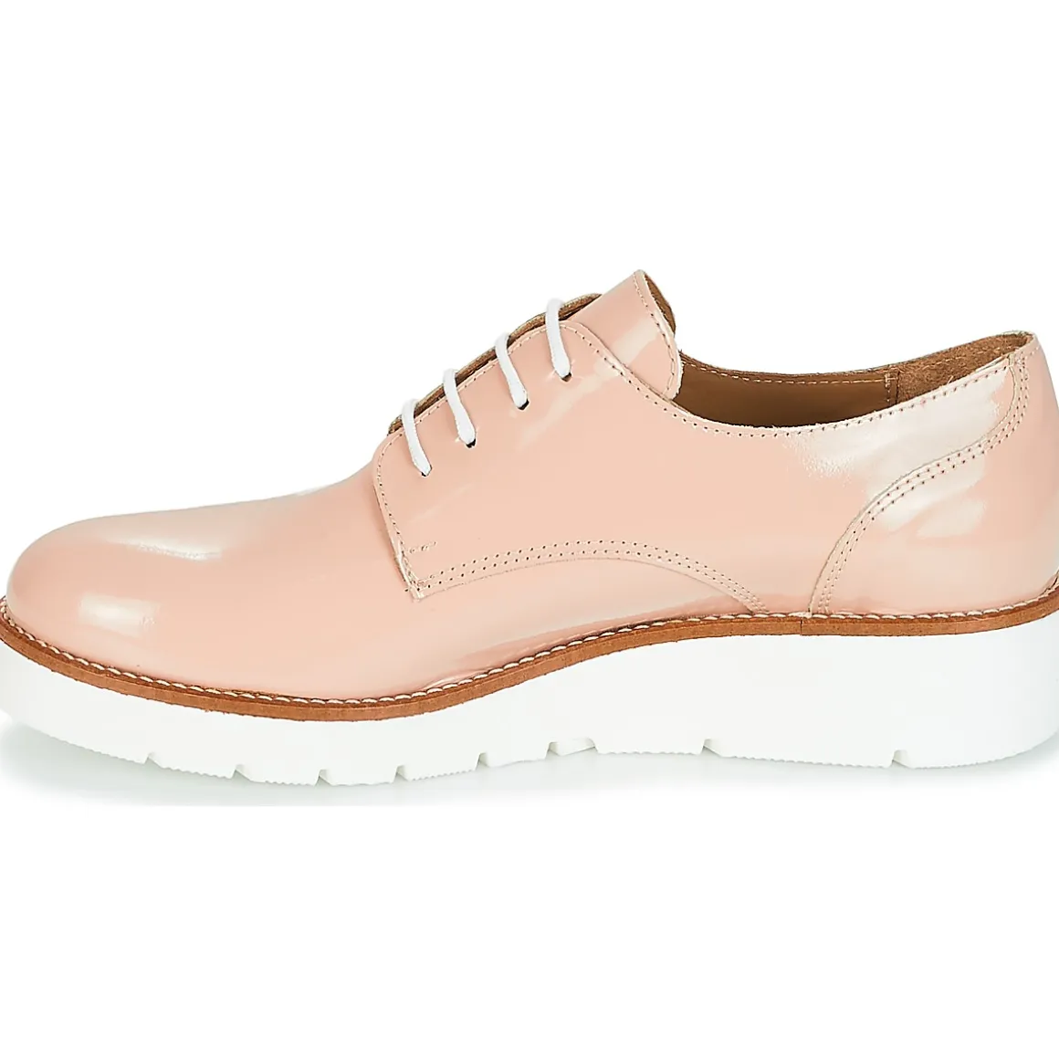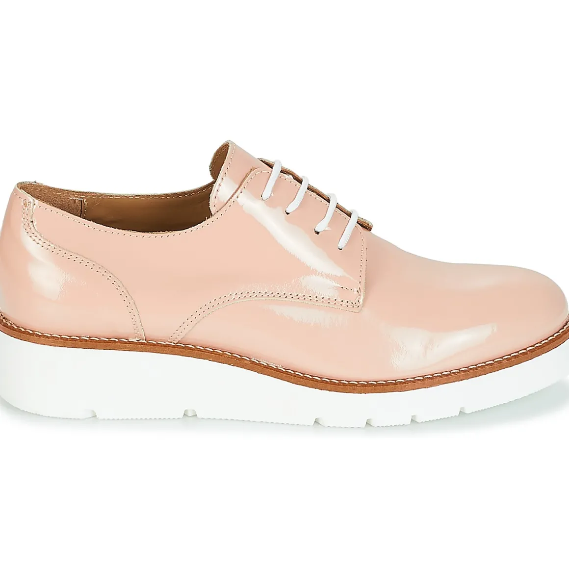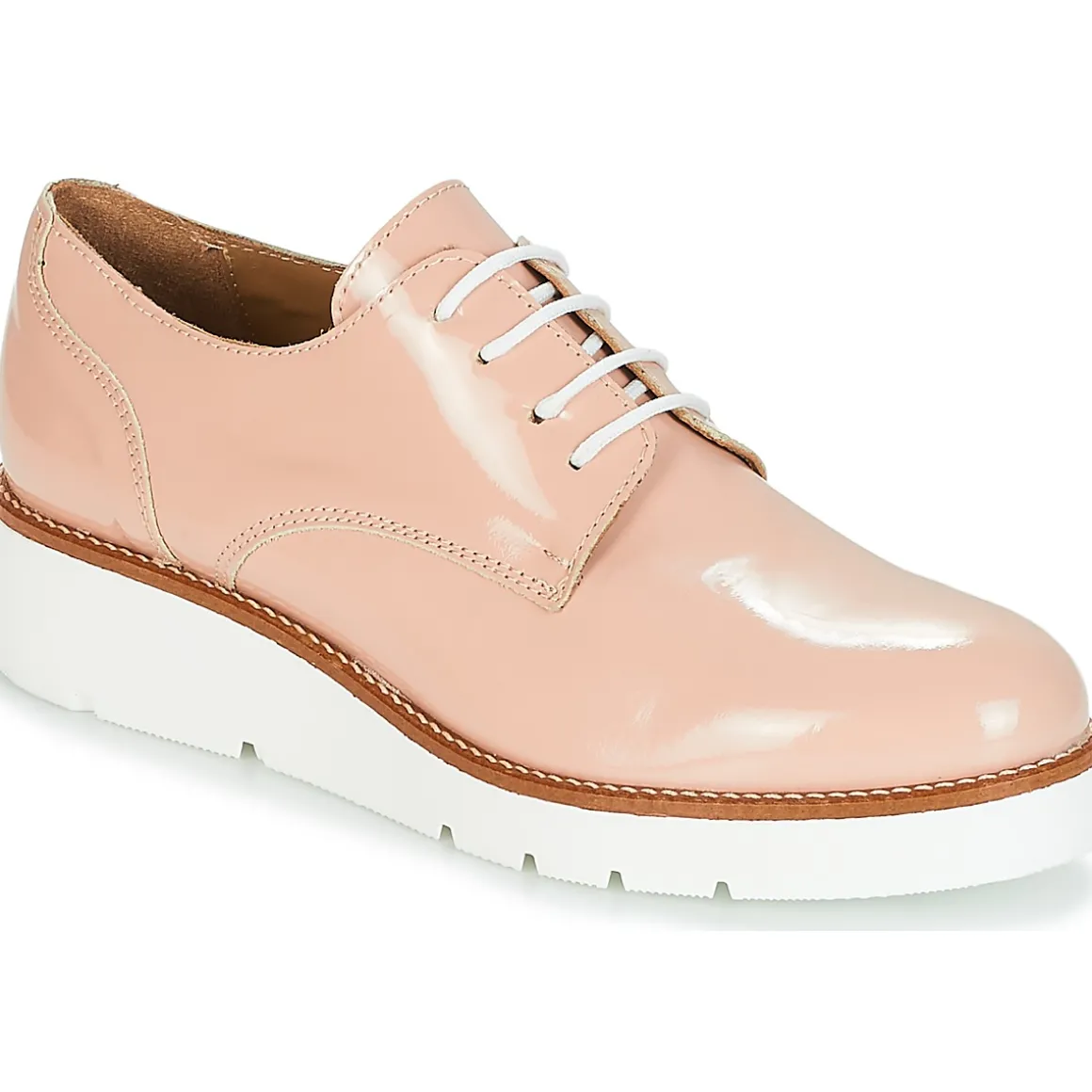 S’il y a bien un derby à s’accaparer au plus vite, c’est incontestablement le Beata de chez Sweet Lemon.De couleur rose, il exprime son charisme tout en se revendiquant facile à vivre.Avec une tige en synthétique et une semelle en caoutchouc, la marque garde la qualité au cœur de ses préoccupations.Il est muni d’une semelle compensée de 4 cm.Il fait déjà des émules auprès des femmes modernes !