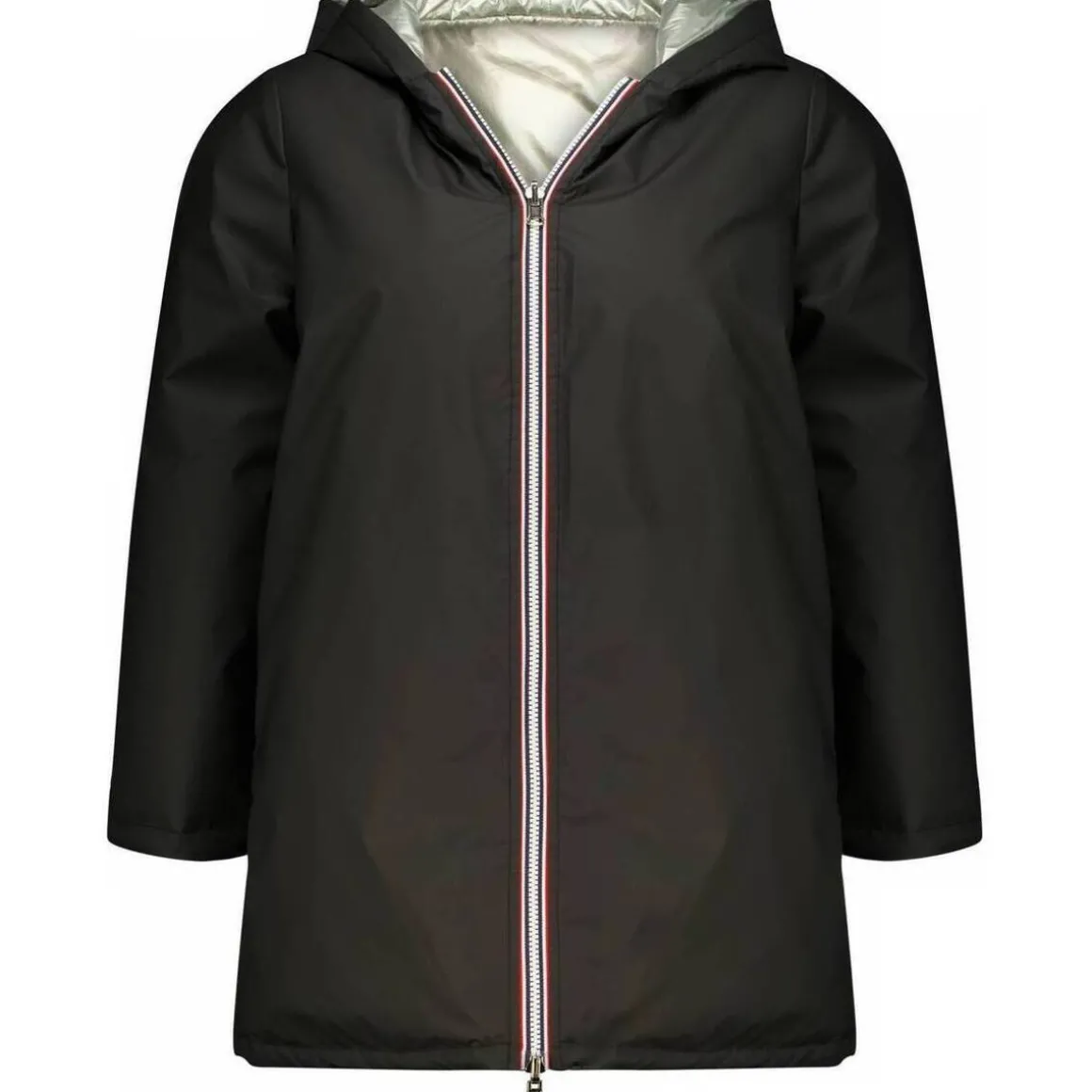 Modèle réversible avec capuche intégréeForme droite et confortable, longueur couvranteUn côté métallisé brillant pour un look original, un côté noir mat pour un style plus discretFermeture zippée contrastée sur toute la hauteurDeux poches pratiques sur chaque faceCapuche couvrante et chaudeUne pièce stylée et fonctionnelle pour l’hiver