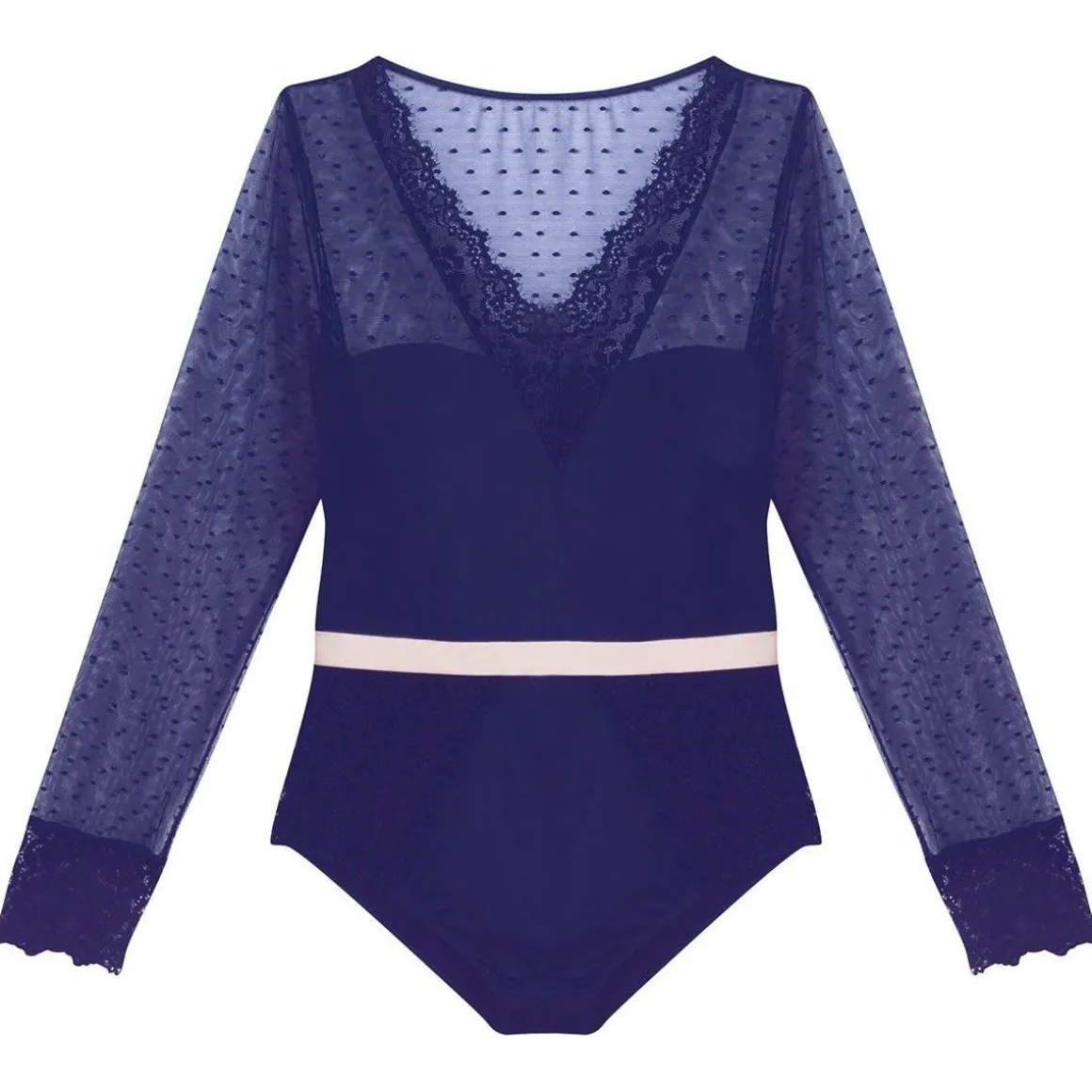 Bodytanga. Microfibre satinée et dentelle raffinée maxi florale. Bijou plumes à l’entre-seins. Bande de microfibre à la taille. Galon de dentelle au décolleté. Tulle plumetis dos et manches. Fermeture 3 pressions, 2 positions. Disponible du 36/38 au 46/48