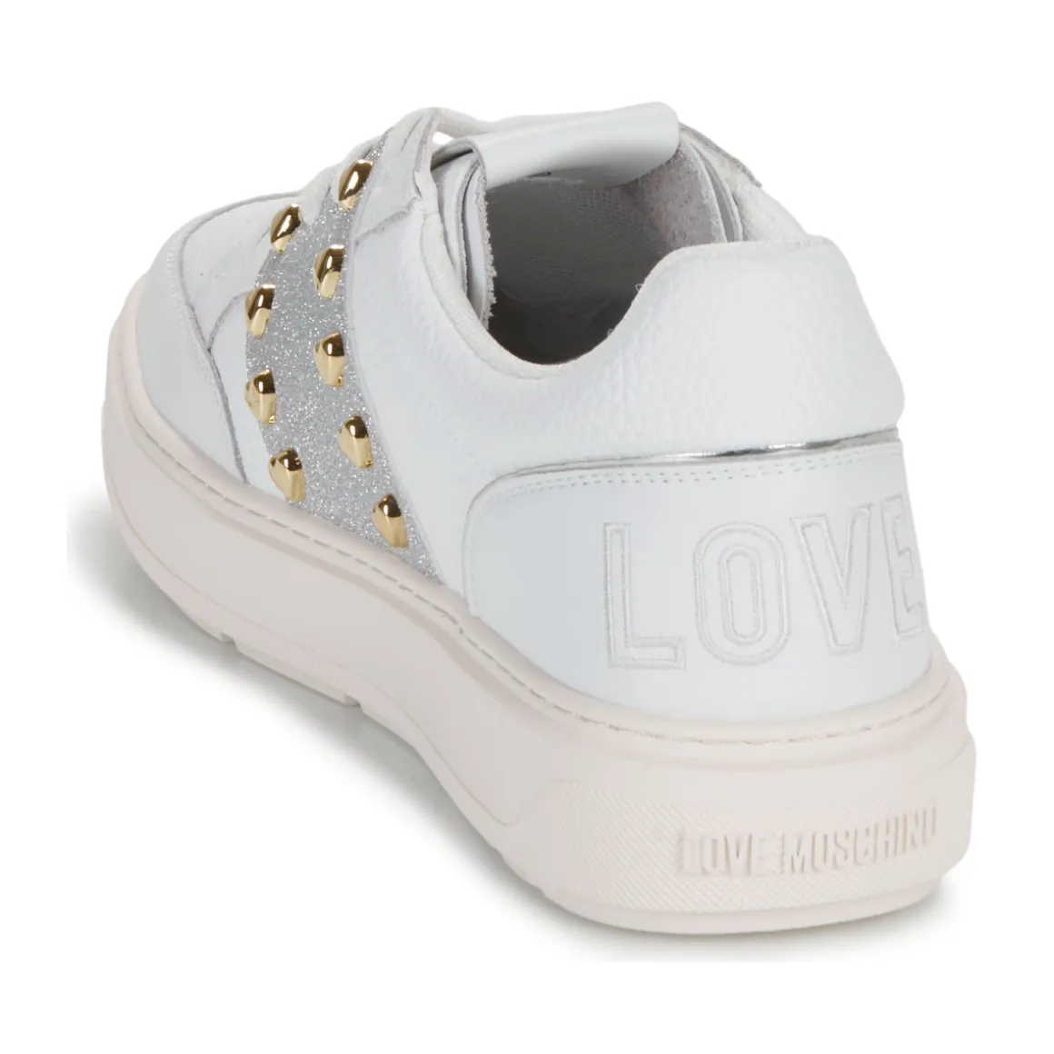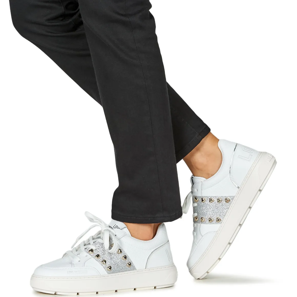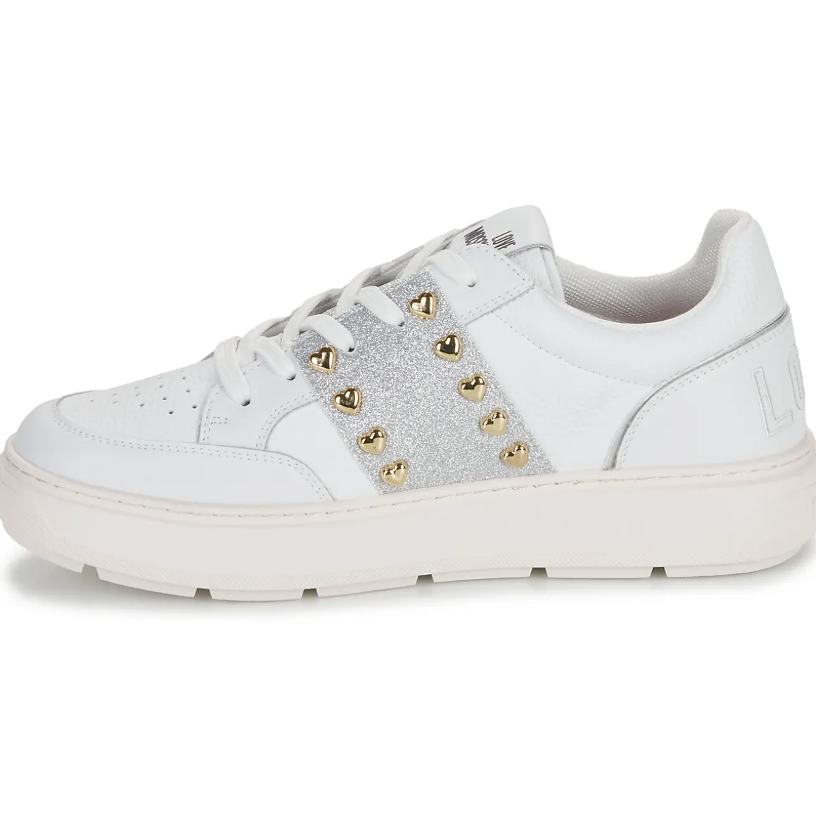 Résolument sportswear, cette basket basse griffée Love Moschino est un basique à avoir absolument. Son coloris blanc et sa tige en cuir et synthétique démontrent une quête stylistique menée à la perfection. Du cuir et synthétique pour la doublure et du caoutchouc pour sa semelle : voici ce qu’elle cache. Pleine de caractère, comment y résisterait-on ?