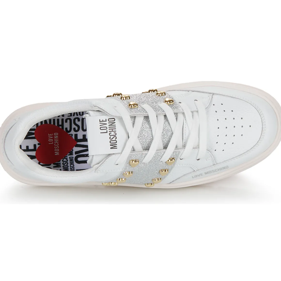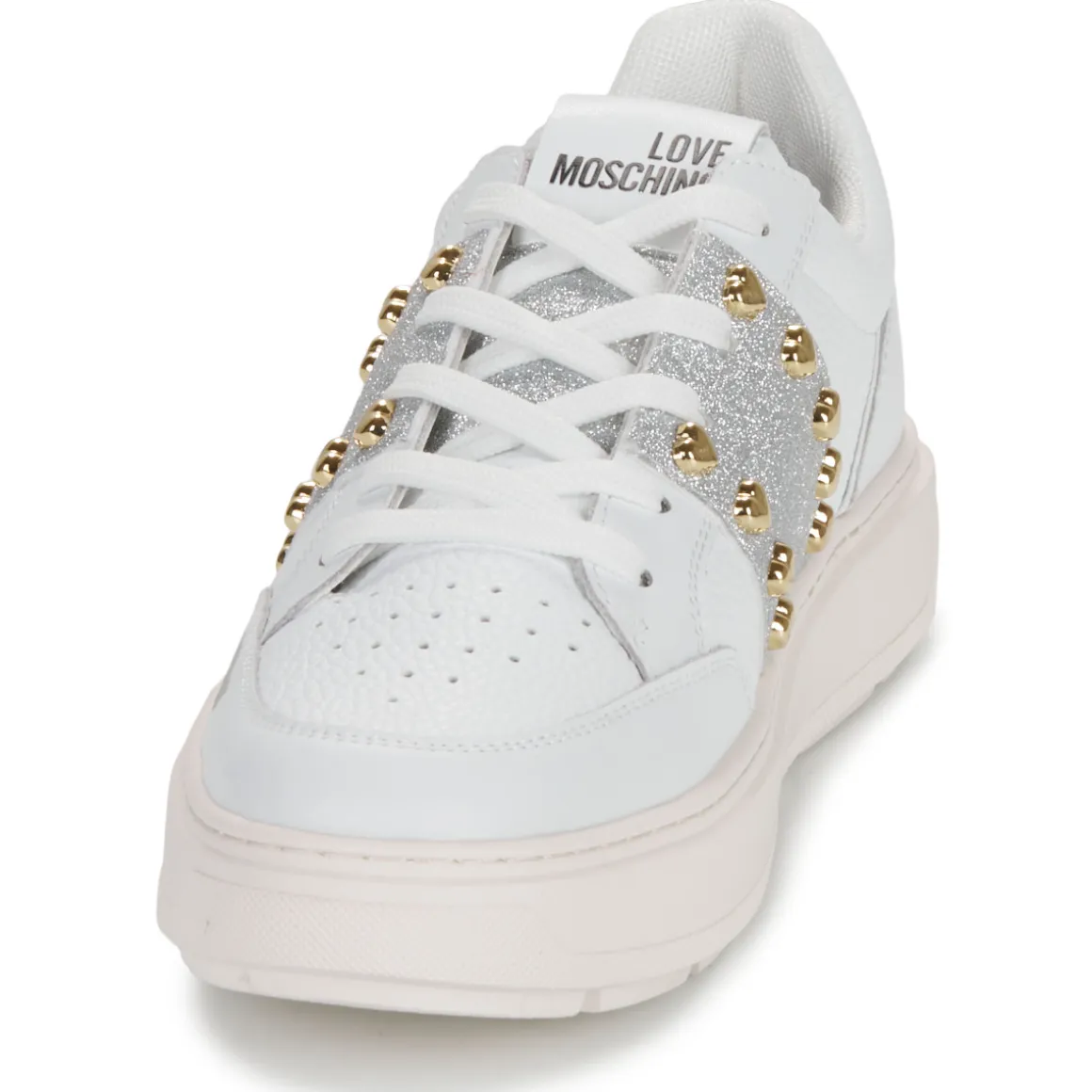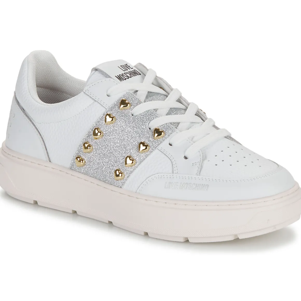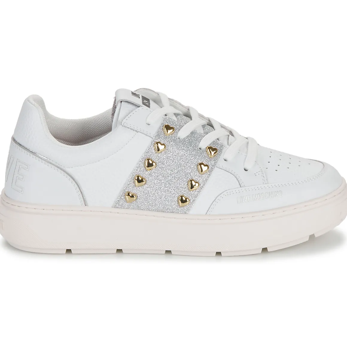 Résolument sportswear, cette basket basse griffée Love Moschino est un basique à avoir absolument. Son coloris blanc et sa tige en cuir et synthétique démontrent une quête stylistique menée à la perfection. Du cuir et synthétique pour la doublure et du caoutchouc pour sa semelle : voici ce qu’elle cache. Pleine de caractère, comment y résisterait-on ?