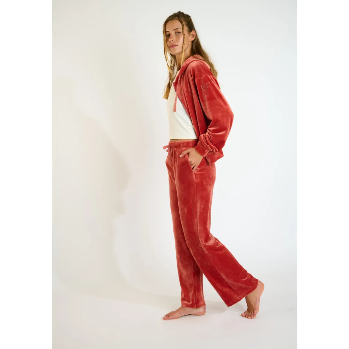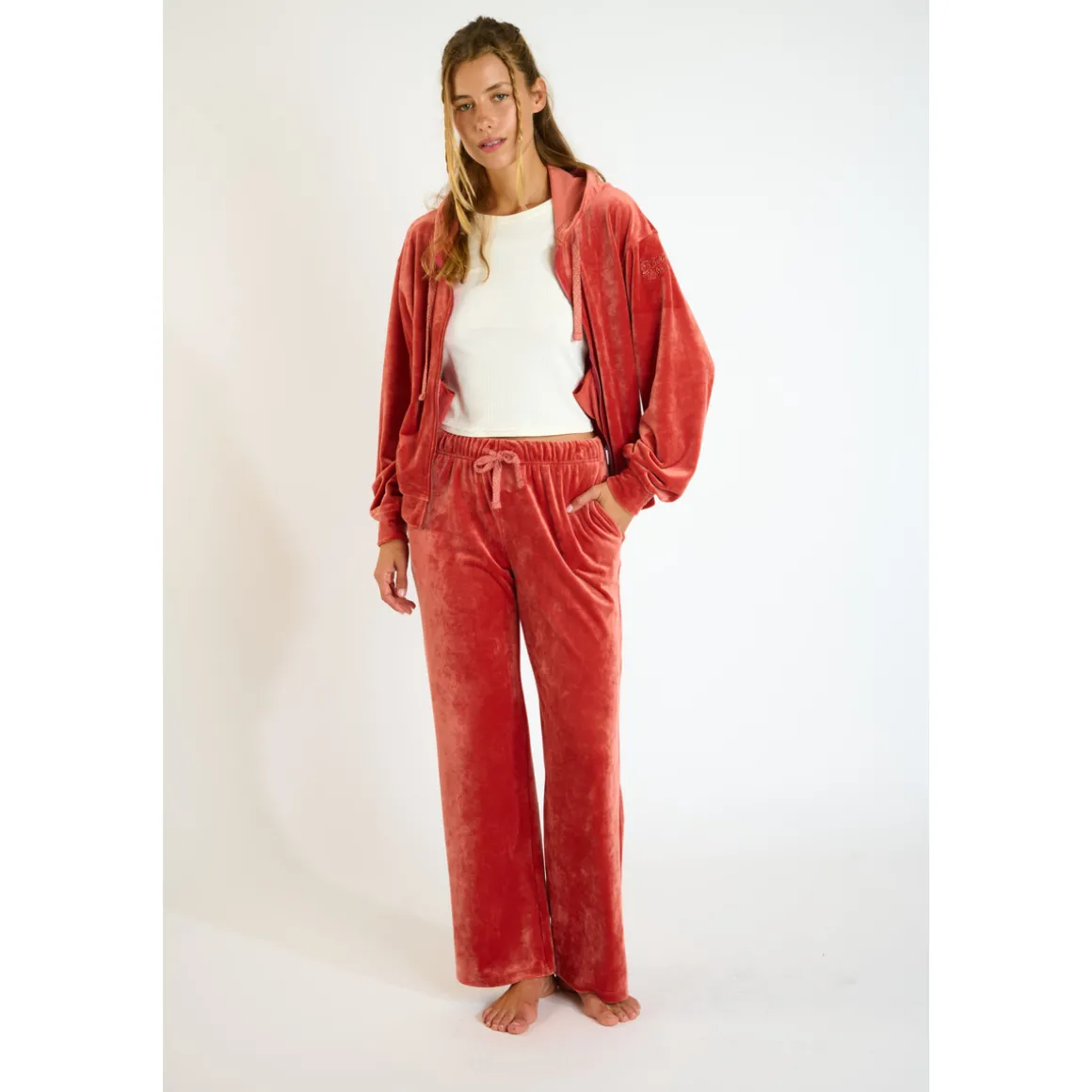 • Pantalon large en velours • Matière douce • Ceinture élastiquée • Poches