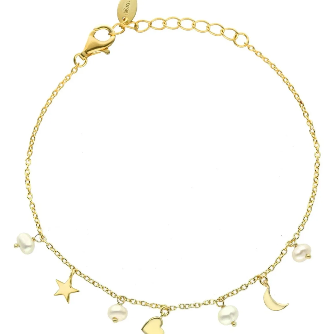 Bracelet Argent Doré étoile Cœur Et Perles Naturelles