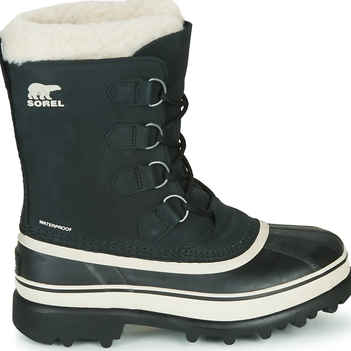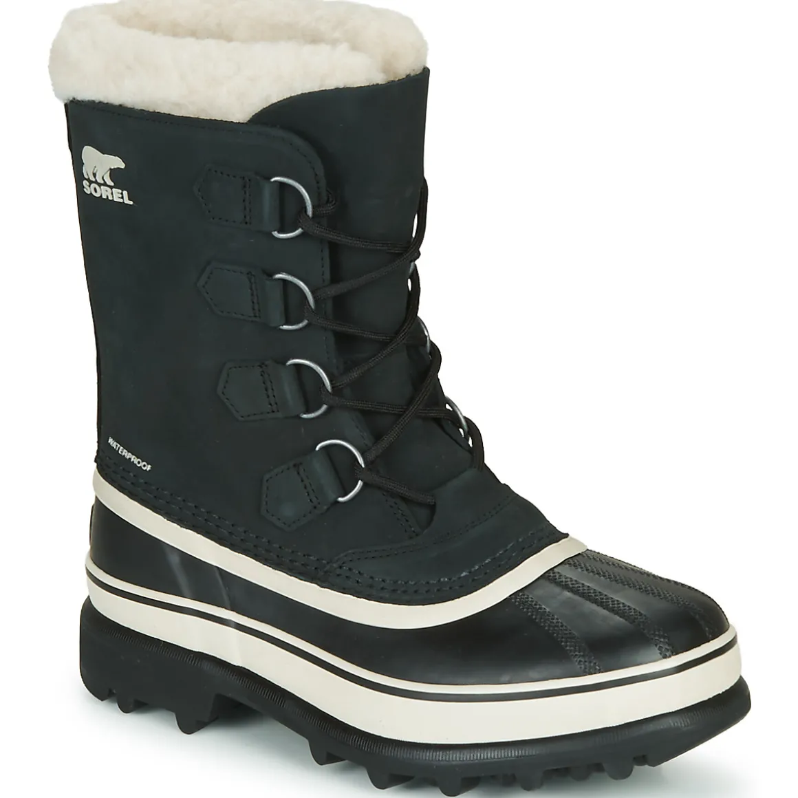 Tige en cuir nubuck imperméable / Construction imperméable aux coutures étanches / Chausson amovible et lavable en feutre Thermoplus de 9 mm avec revers pare-neige Sherpa Pile / Insert antigel en feutre contrecollé de 2,5 mm / Coque imperméable en caoutchouc vulcanisé fabriquée artisanalement, avec semelle extérieure Sorel AeroTrac ne retenant ni la neige, ni la terre