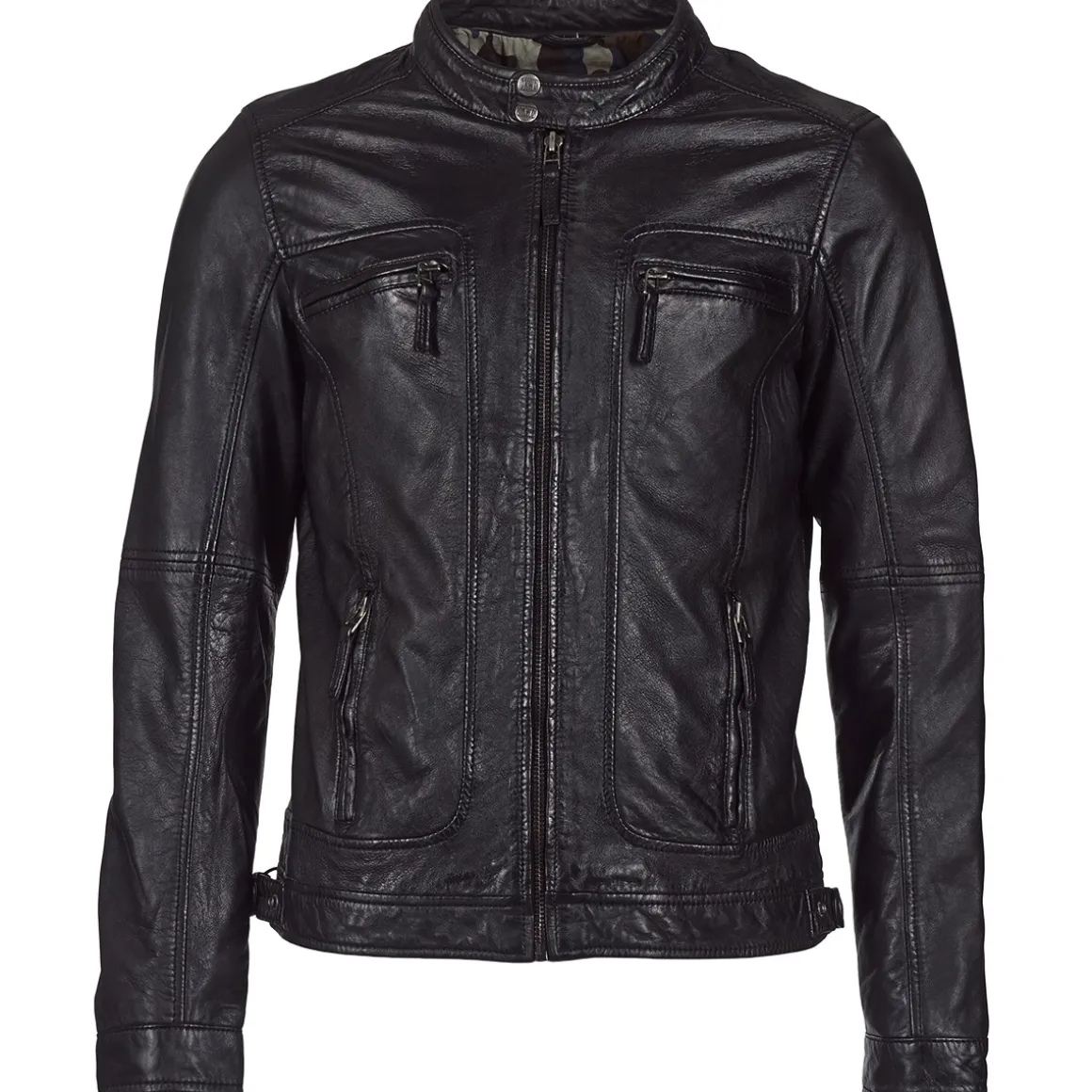 Extérieur : cuir de mouton / Doublure : manches 100% polyester ; corps 100% coton / Finition cuir lavé