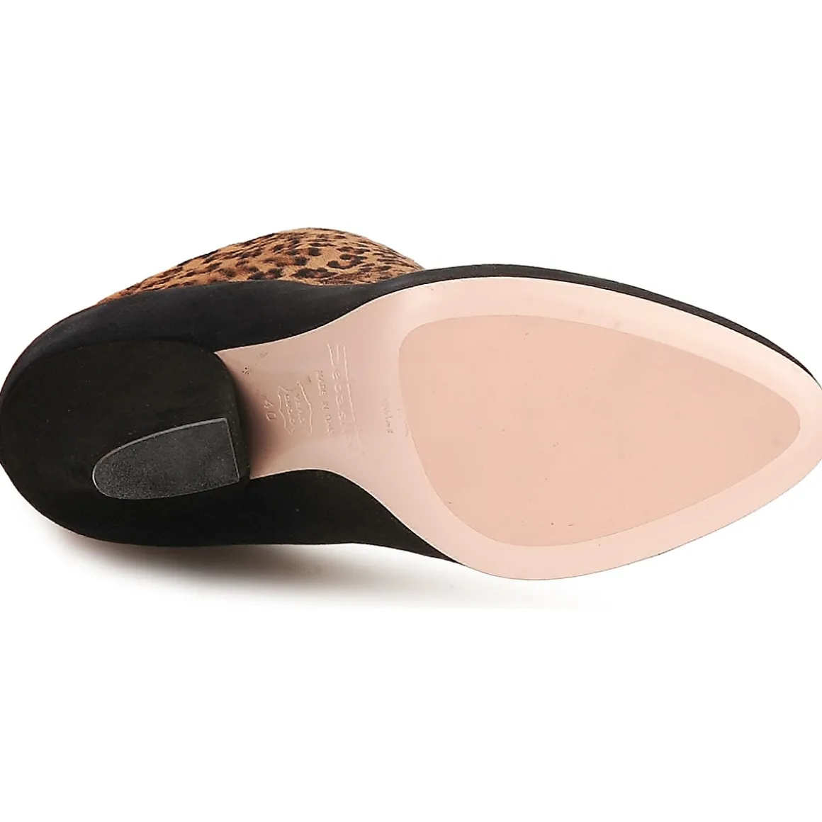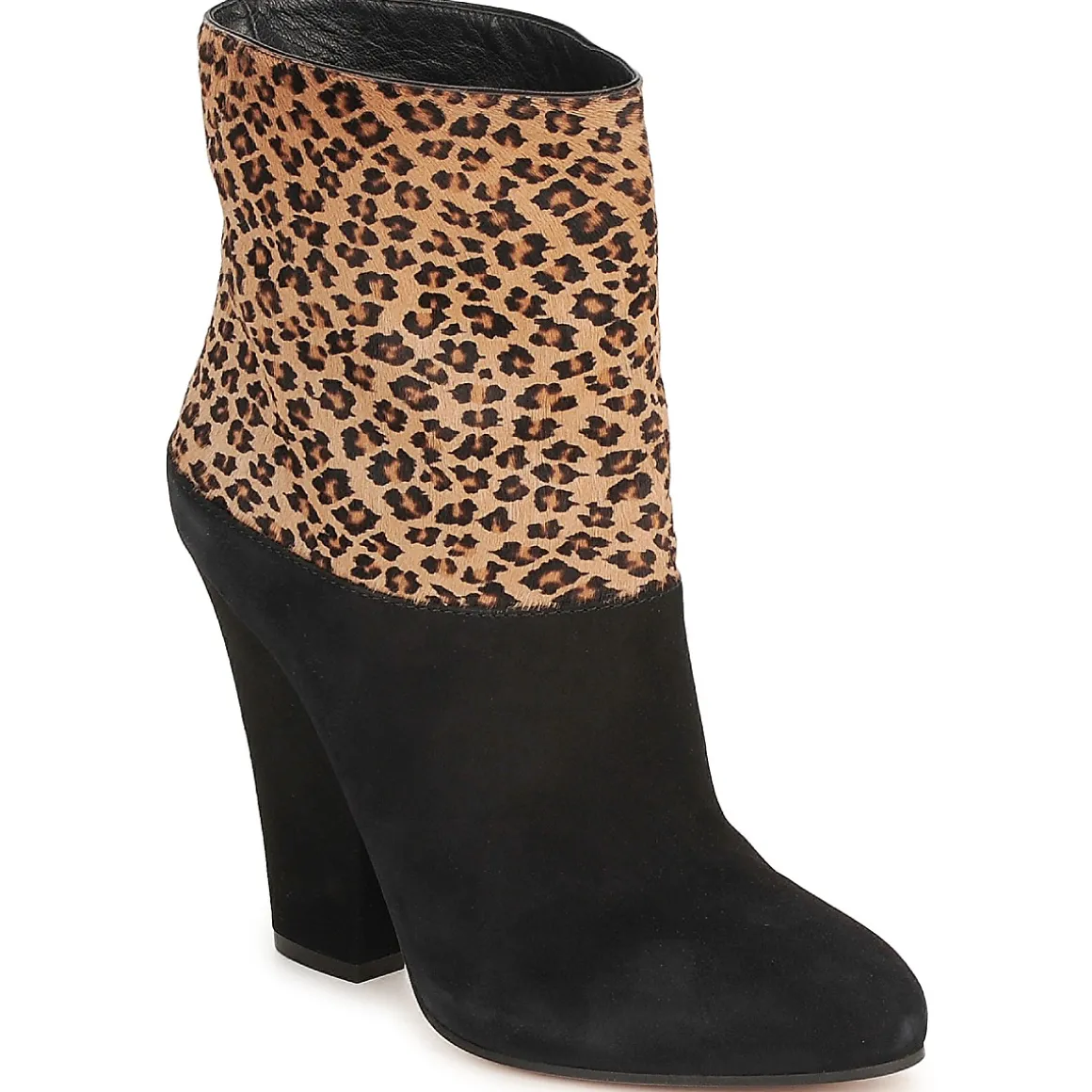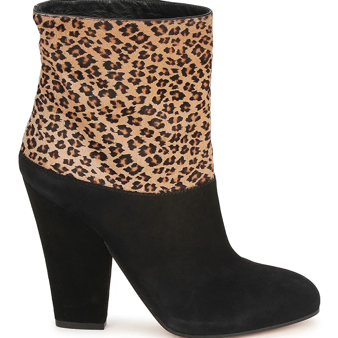 Bottine Sebastian en cuir. Imprimé léopard sur la tige contrastant avec la base du modèle. Talon haut.