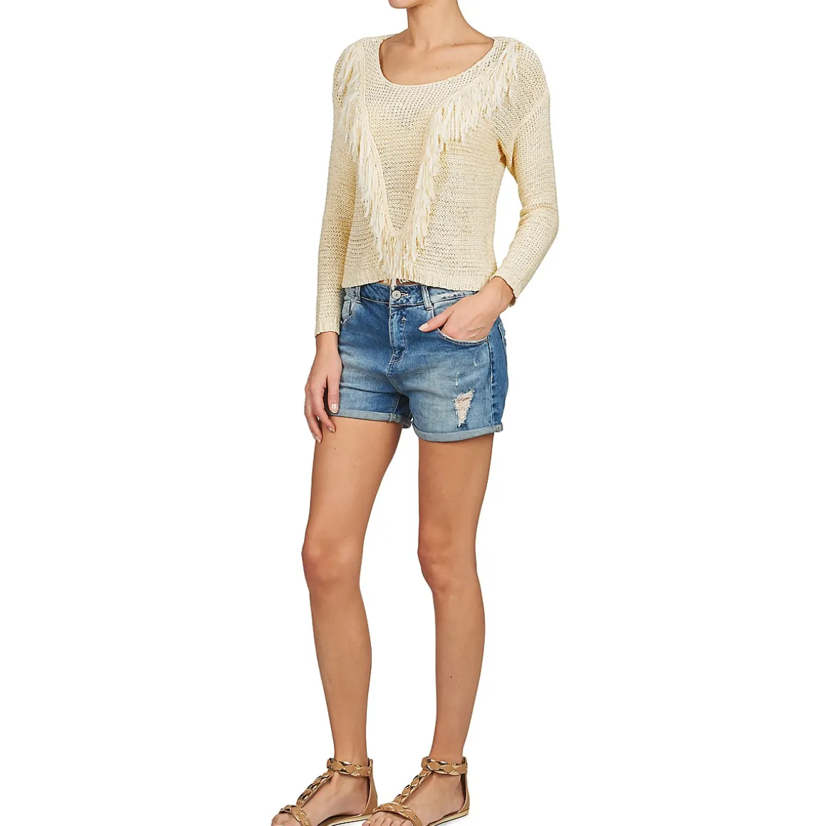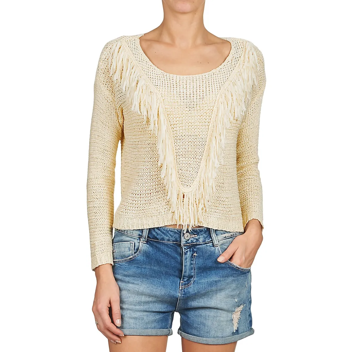 Le pull en maille est de rigueur cette saison ! Et nous avons opté pour ce modèle signé Betty London. Pour se différencier de ses concurrents, il arbore un joli plastron décoré de petits bouts de fils effilés, comme une collection de plumes. On adore son look bohème, que nous porterons sans concession.