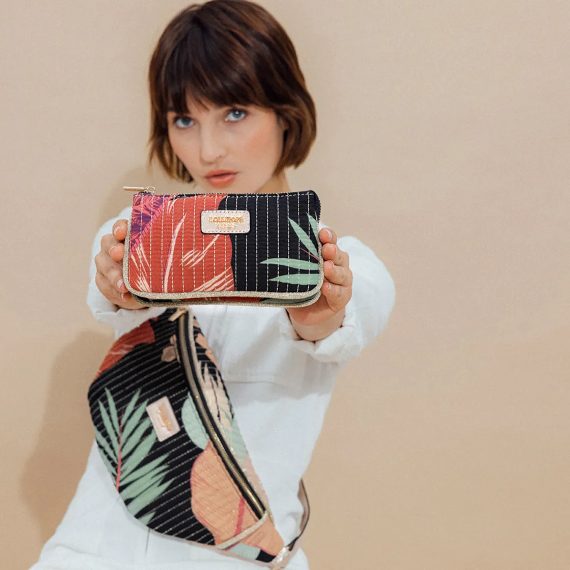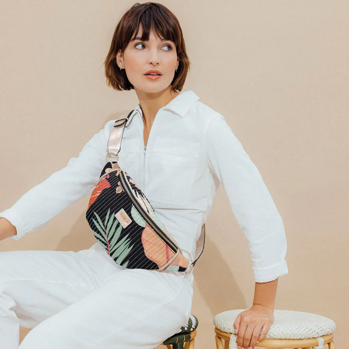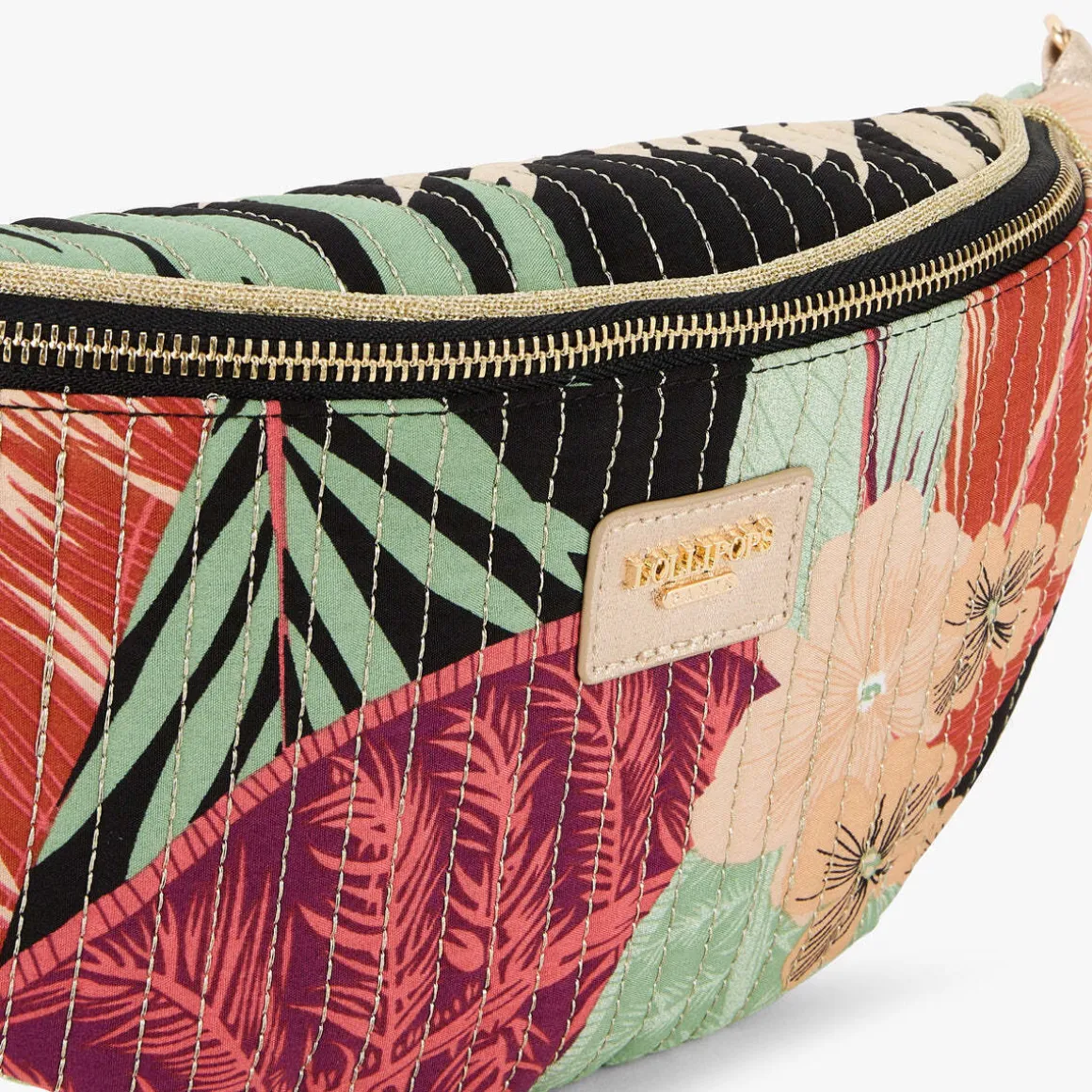 Sac banane motif fleursTissu matelassé avec surpiqûres apparentesDétail biais doré pailleté sur le hautBandoulière ajustable sur plusieurs positionsLogo Lollipops en relief à l’avantFermeture principale zippéeUne poche zippée au dosUne poche zippée à l’intérieurHauteur : 17 cmLargeur : 10 cmLongueur : 31 cmCollection : Palila