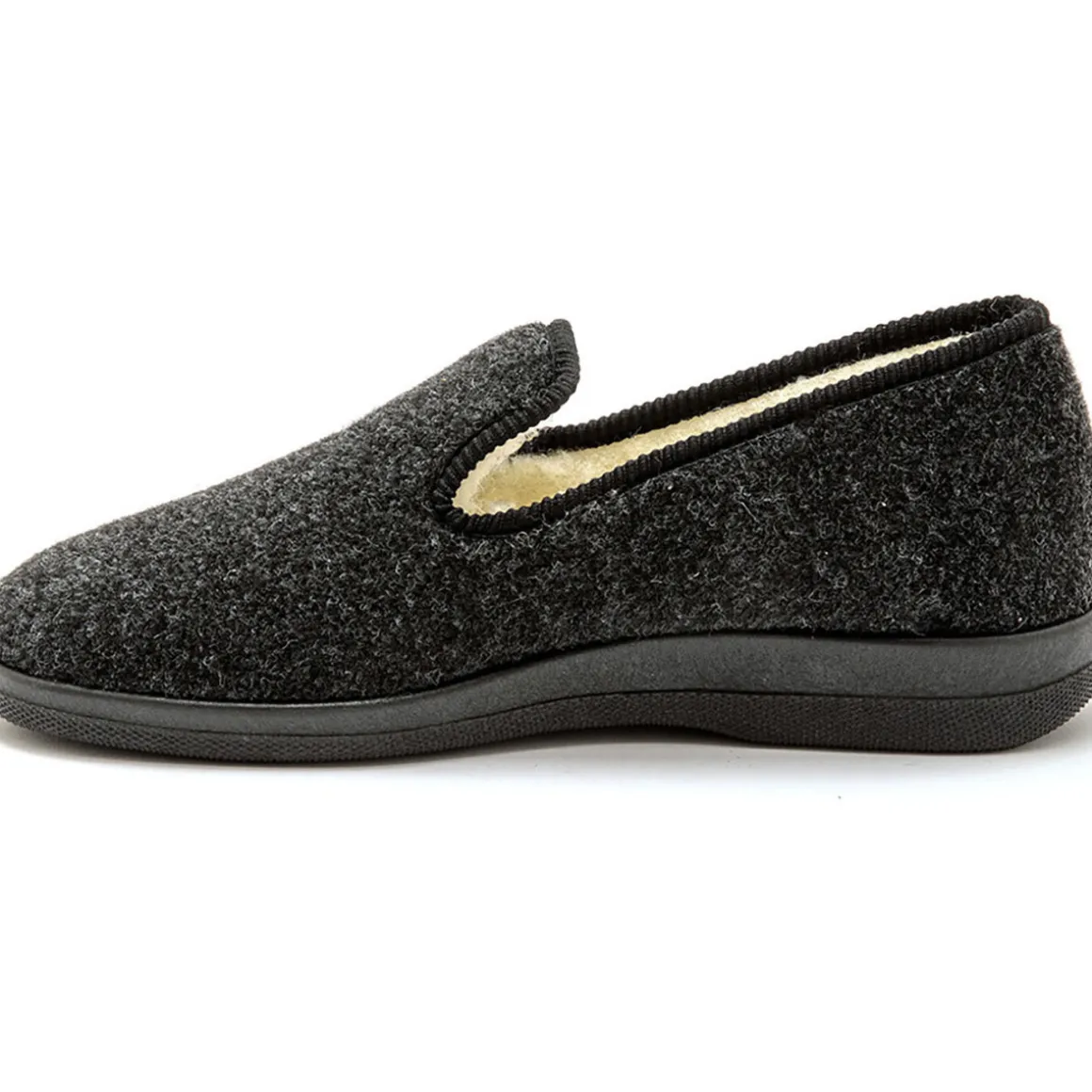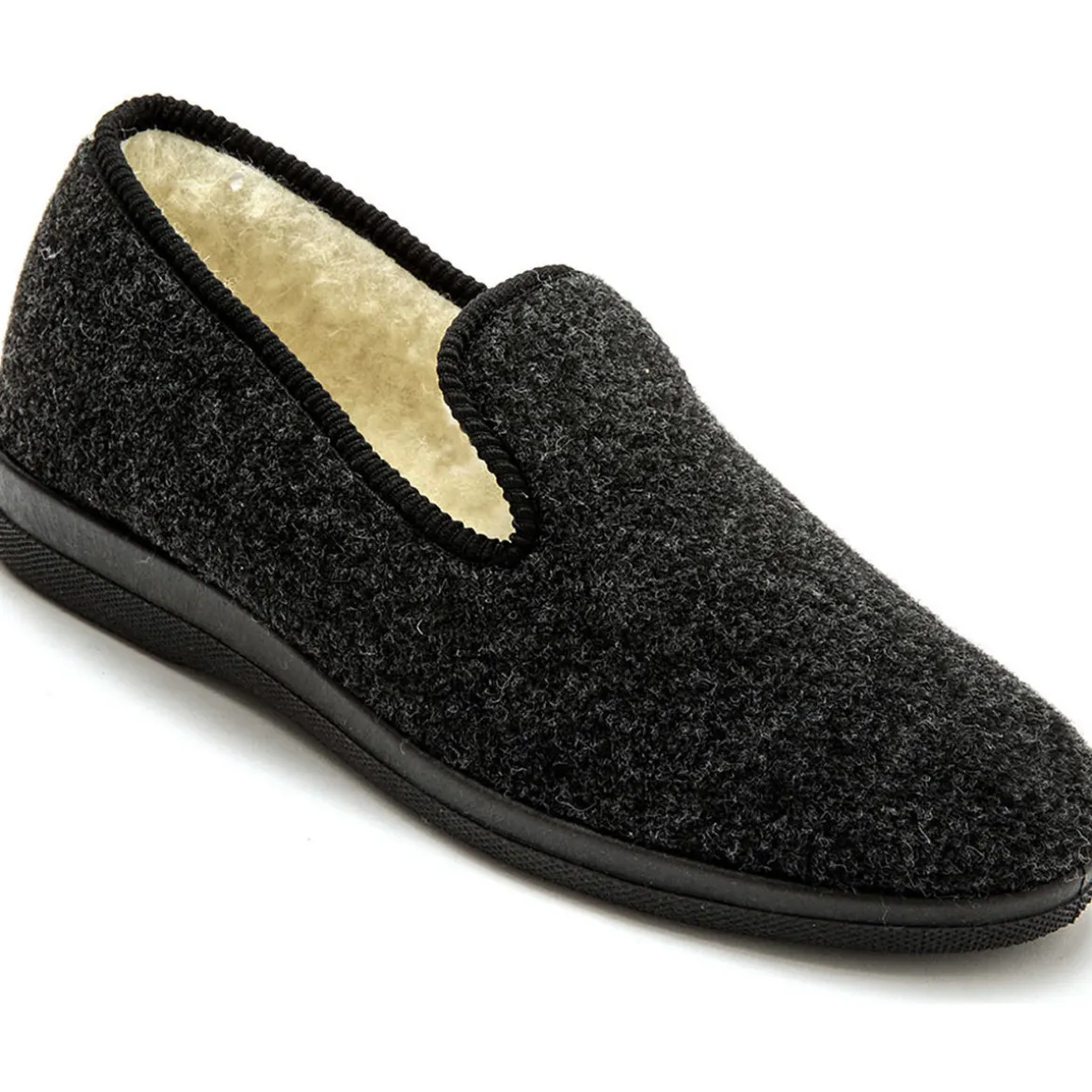 Détendez-vous à la maison avec ces charentaises mixtes ultra-confortables. Conçues pour allier chaleur et bien-être, elles sont l’indispensable de vos soirées cocooning. Points forts :Chaleur et confort : Intérieur en fourrure de laine majoritaire pour garder vos pieds au chaud.Ajustement parfait : Modèle en grande largeur spécialement conçu pour les pieds forts.Adhérence et sécurité : Semelle en caoutchouc véritable pour une meilleure adhérence au sol.Durabilité : Dessus en textile doux et résistant, avec une finition biais soignée.Pour tous : Modèle unisexe disponible en grandes pointures.Qualité européenne : Fabriqué avec soin en Europe.