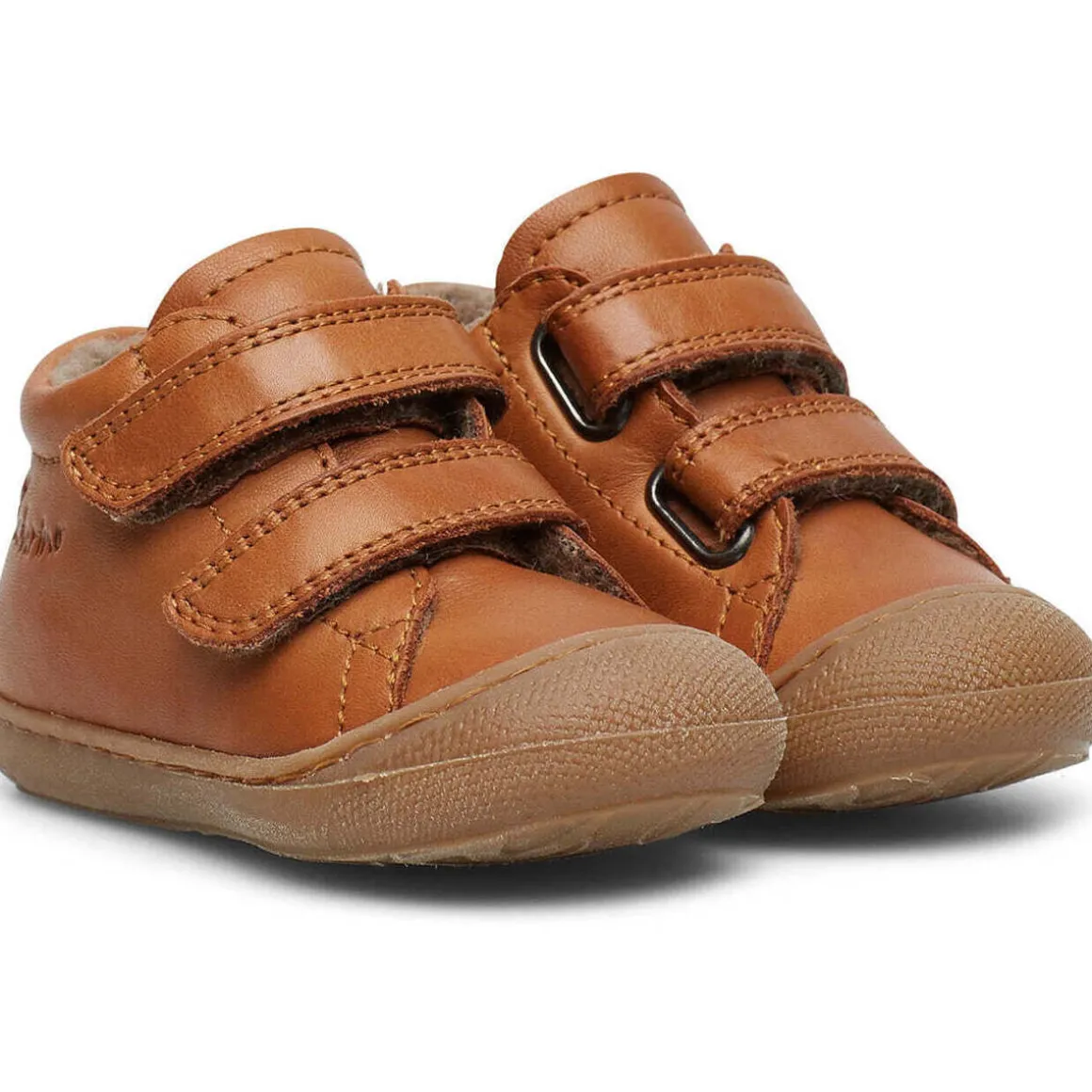 Les chaussures premiers pas les plus appréciées des enfants. Fabriquées en nappa très souple, elles disposent d’une conception spéciale à cheville rembourrée et talon renforcé, qui soutient les mouvements même des plus petits. Ce modèle avec doublure en laine est conçu pour offrir confort et chaleur même pendant la saison plus froide. Semelle en caoutchouc antidérapante avec bout renforcé.