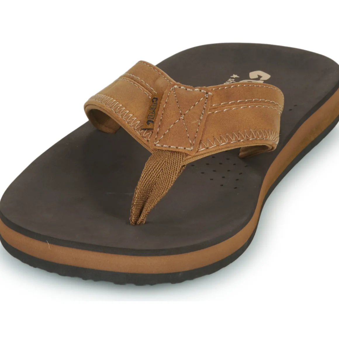 Cette tong n’a qu’un objectif : maintenir idéalement vos pieds en mode farniente ! Un coloris marron et un design spécialement étudié pour les hommes situent la Cloud parmi les coups de cœur de la collection. Son entredoigt en synthétique et sa semelle en synthétique sont là pour garantir un confort quotidien. Les adeptes auront reconnu la marque Cool shoe.