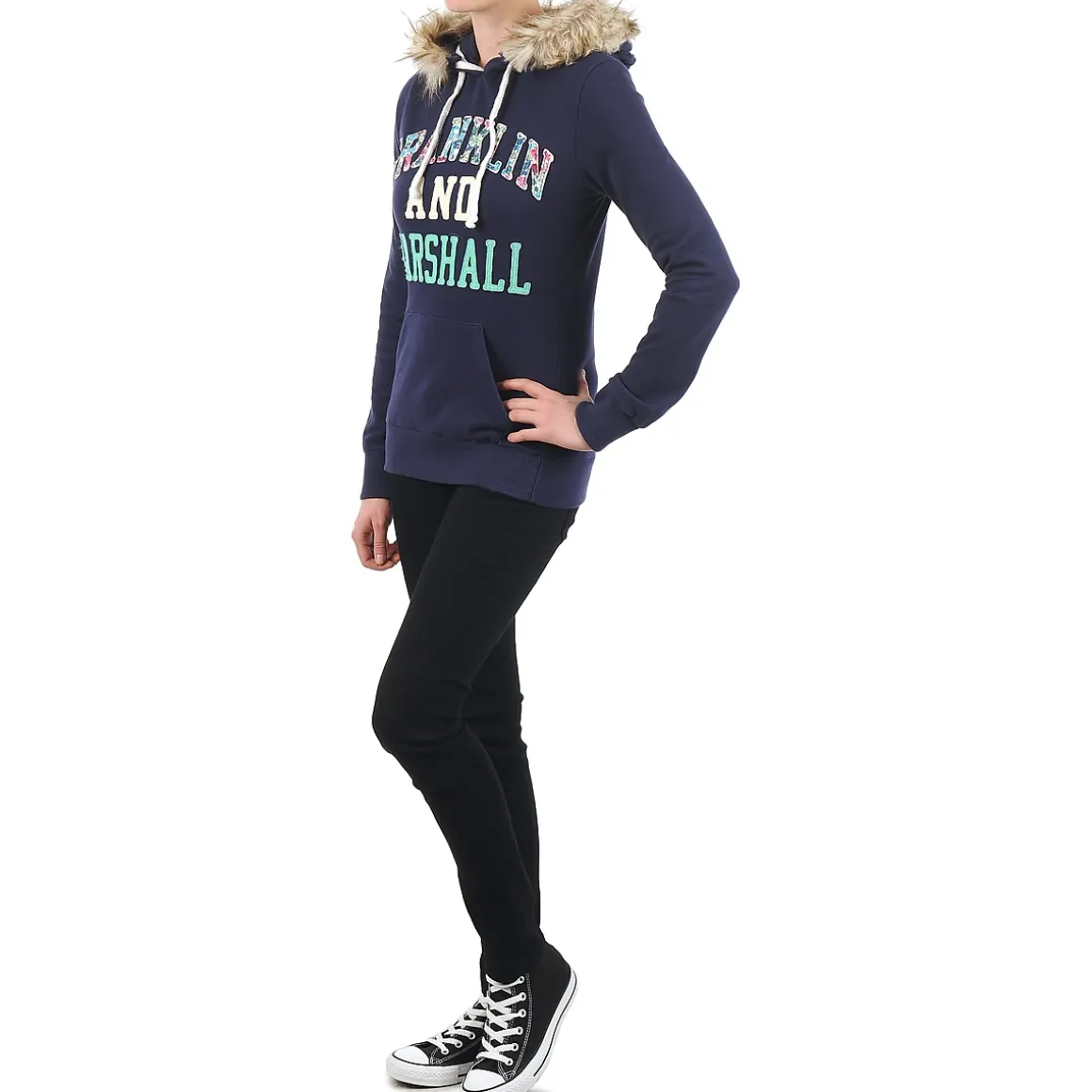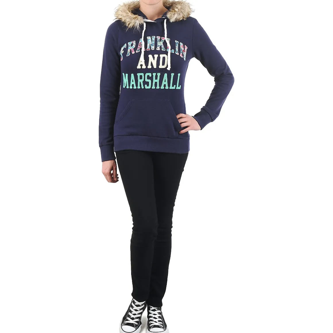 Voilà un sweat à capuche Franklin & Marshall plein de style qui ne manquera pas de faire des émules auprès des modeuses cette saison. Forcément typé sportswear, il arbore une jolie bordure de capuche en fourrure et le nom de la marque en lettres colorées sur la poitrine.