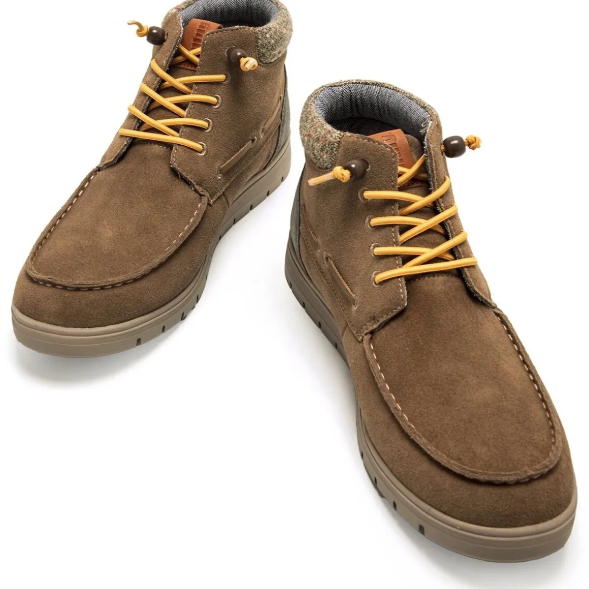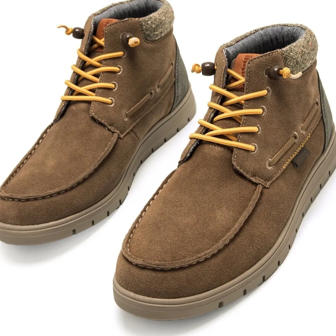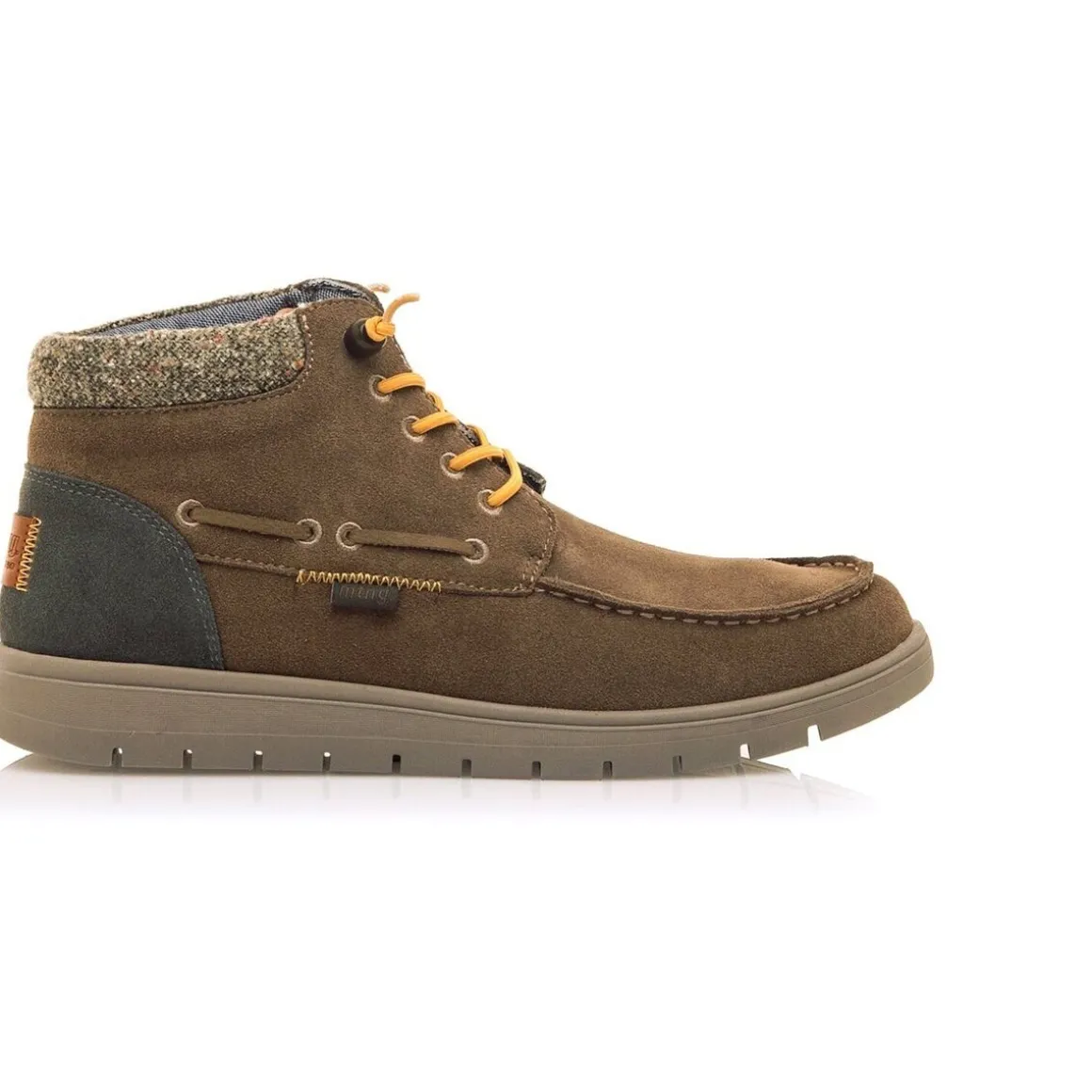 Chaussure de botte bateau de couleur taupe pour homme, modèle Denver par MTNG. Fabriqué avec du cuir provenant de fabricants approuvés par le protocole « Leather Working Group », où ils évaluent la conformité et les performances environnementales, promouvant des pratiques commerciales environnementales durables au sein de l’industrie du cuir. Il présente des détails gris contrastés sur le talon et un col rembourré en tweed multicolore, qui ajoute de la chaleur et une touche distinctive. Comprend des lacets jaunes avec fermeture réglable par stoppeur. Elles intègrent une semelle intérieure amovible avec technologie Starfit et un design thermoformé, qui s’adapte parfaitement au contour du pied pour offrir un soutien optimal. Grâce à la mousse Comfort, ils garantissent un amorti et un confort exceptionnels tout au long de la journée.