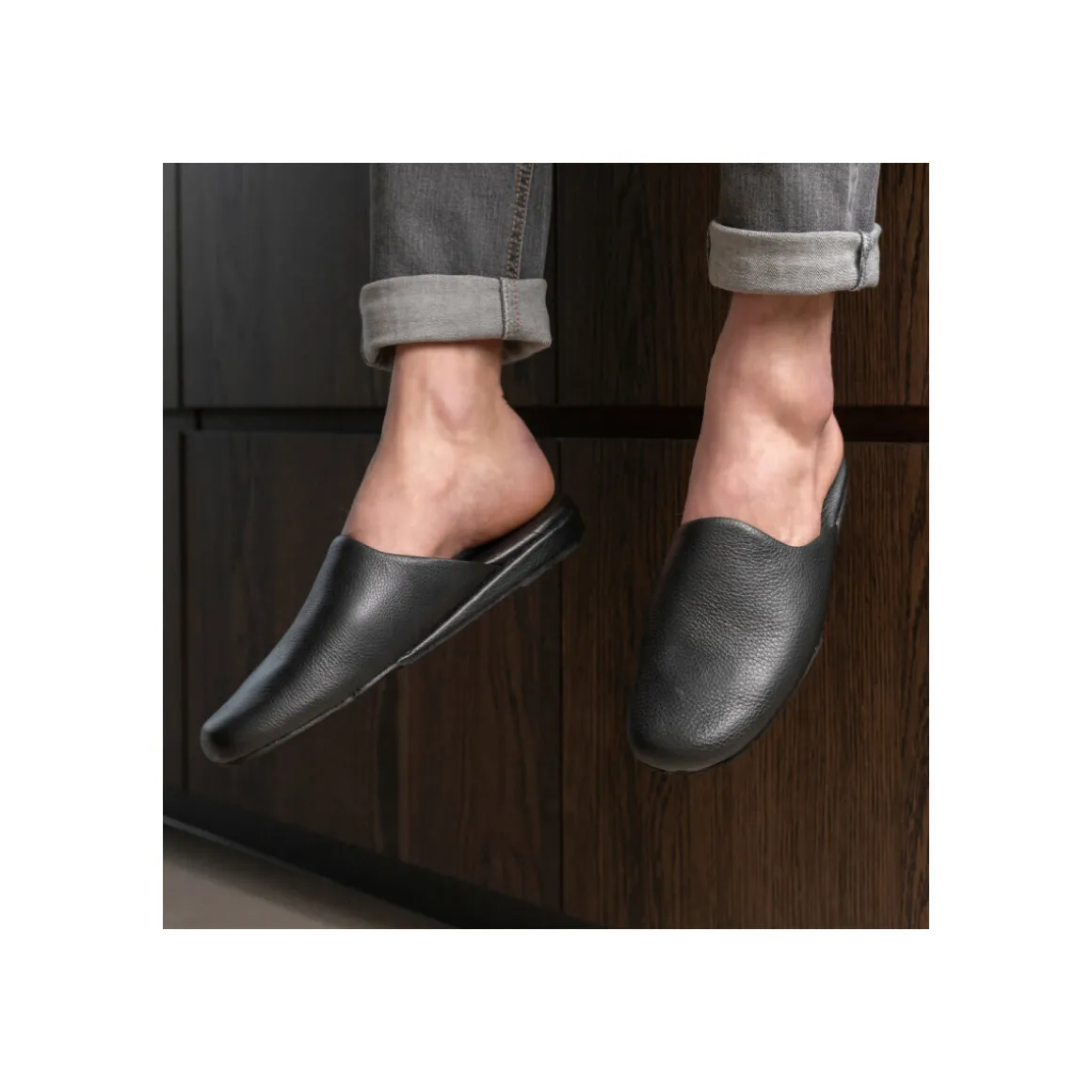 Notre modèle DIN, un choix sûr pour un look classique et chic, disponible en stock toute l’année !Ces mules d’intérieures en cuir vachette grainé noir pour homme sauront s’adapter à votre style de vie. La souplesse du cuir épouse parfaitement la forme du pied, offrant ainsi un confort durable tout au long de la journée. La première en cuir ultra souple, combinée à une cale en liège extra légère, garantit un amorti exceptionnel à chaque pas pour une marche fluide et reposante. Enfin, la semelle en croûte de cuir, conçue pour l’intérieur, assure une excellente adhérence tout en préservant un style raffiné.En option, une semelle en gomme, disponible sur commande, peut être ajoutée pour un usage extérieur, vous offrant ainsi une solution polyvalente.En version noire, les mules DIN sont disponibles du 39 au 50.La marque HellerNée en 1904 à Limoges en Limousin, terre historique de la tannerie et de l’industrie de la chaussure. Heller, est spécialiste en chaussures d’intérieur et d’extérieur en cuir, une matière noble qui confère une grande longévité aux produits.Aujourd’hui la marque a changé de propriétaire mais les valeurs et les missions sont toujours identiques : apporter de l’élégance à nos clients à travers des modèles classiques et intemporels des vestiaires masculin et féminin grâce à des matériaux de qualité sourcés en Europe.