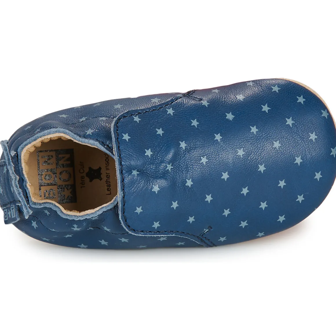 Grâce à la marque Bonton les petits pieds de bébé seront protégés en toutes circonstances. Sa tige en cuir souple bleu et sa doublure en cuir s’adaptent à tous ses mouvements. Sa semelle intérieure est en cuir et sa semelle extérieure est en caoutchouc souple et robuste à la fois. On aime son côté ludique et tout en souplesse !