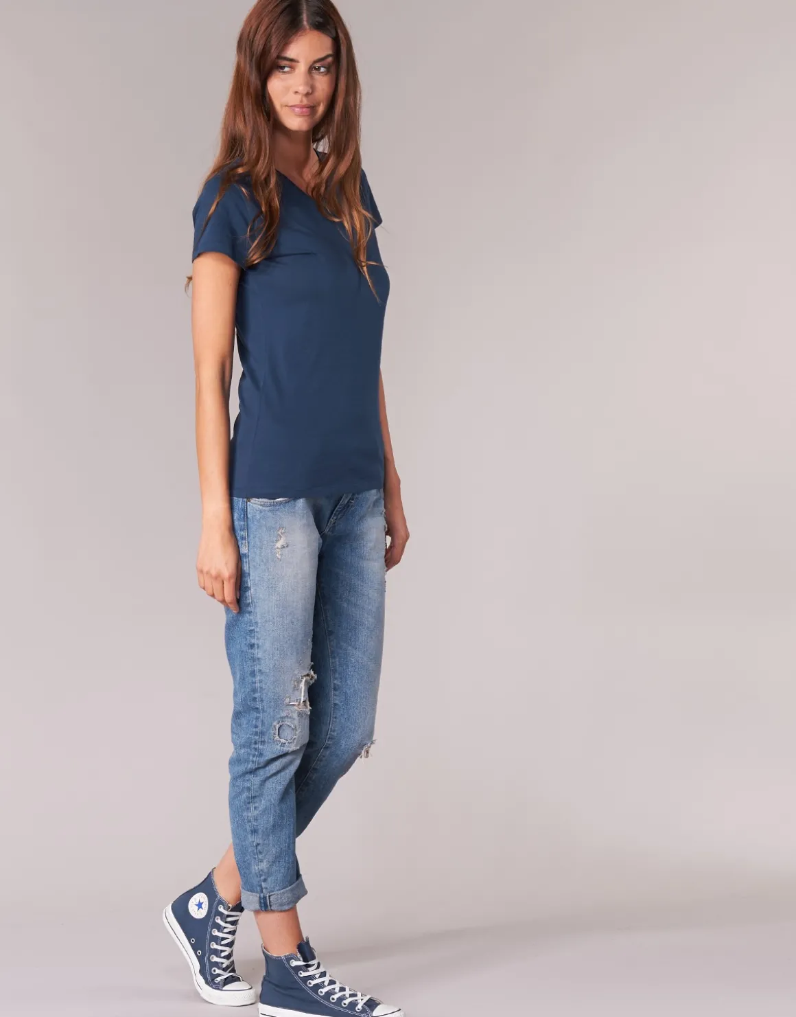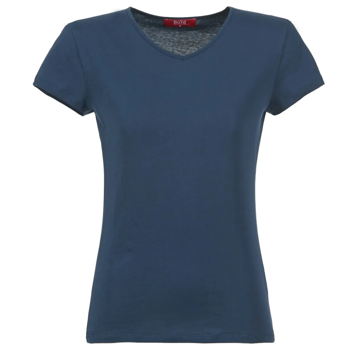Besoin d’un vêtement facile à porter ? Ce T-shirt à manches courtes et col V signé BOTD a tout ce qu’il faut !Un modèle qui combine coloris bleu et composition en jersey (100% coton 120gr/m2) .On aime son style féminin !
