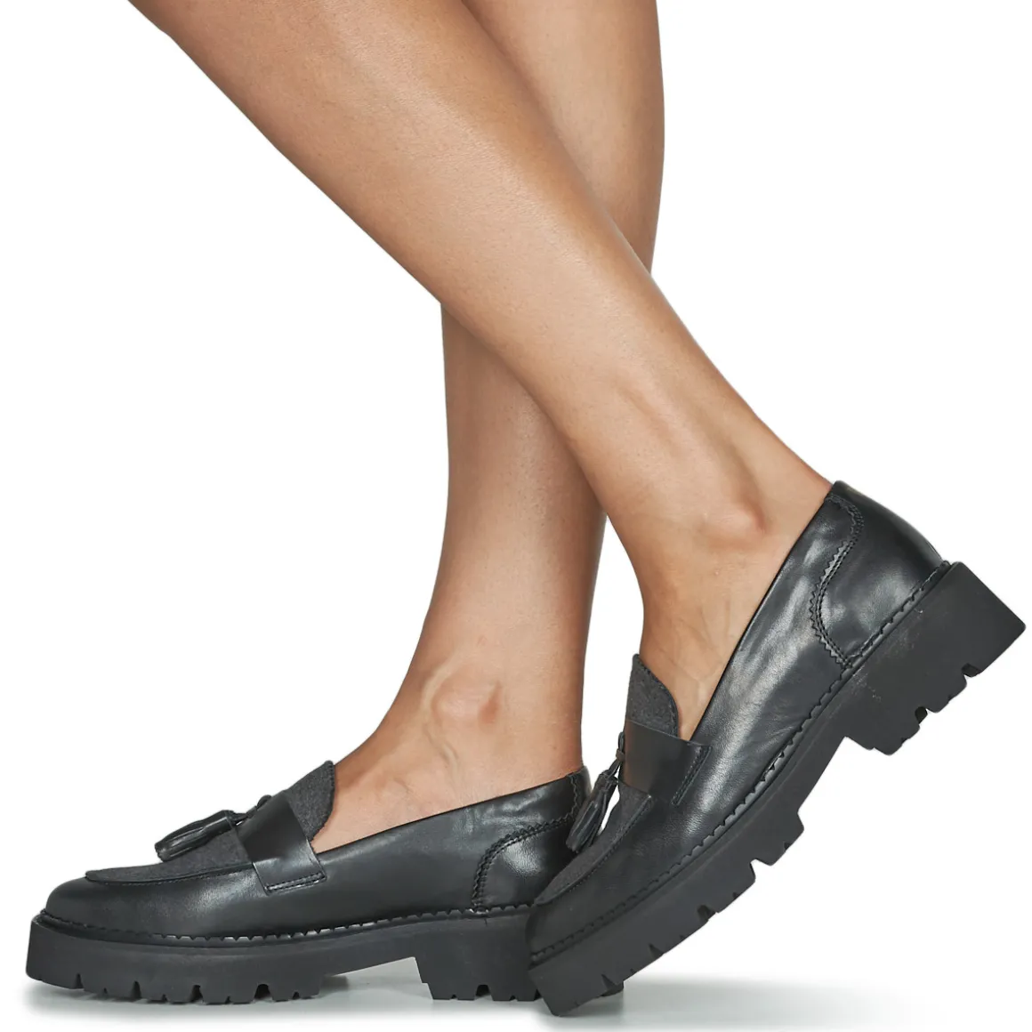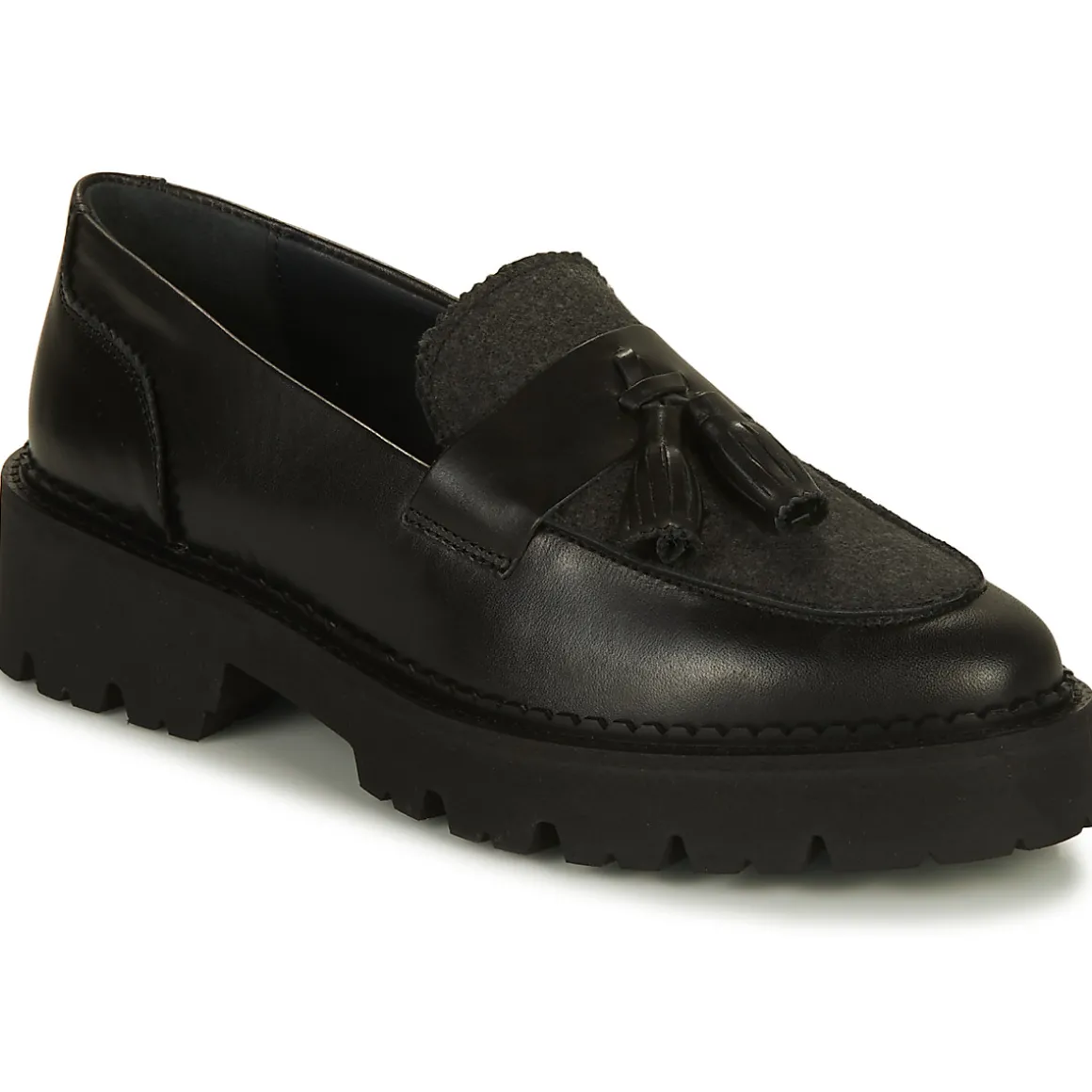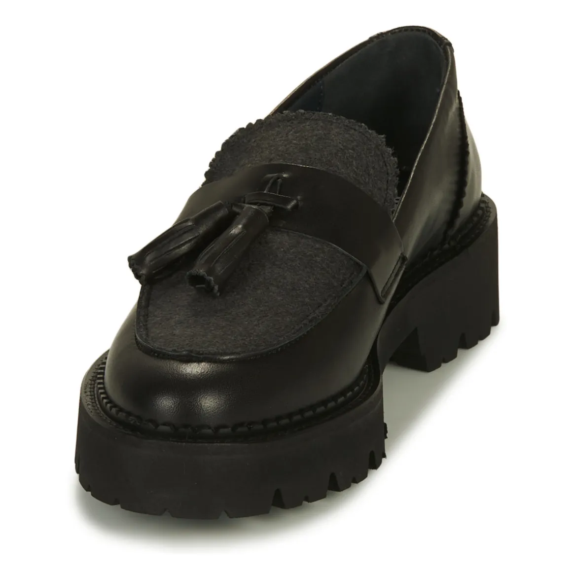 Les chunky loafers, ces mocassins à semelle XXL, se destinent aux as de la mode. A toutes celles qui manient les tendances comme des reines. Le modèle Faustine de JB Martin présente une composition de qualité, entre cuirs et feutre pour un confort extra et un style au top. A porter avec des socquettes blanches et une jupe sans collants, pour un style preppy.