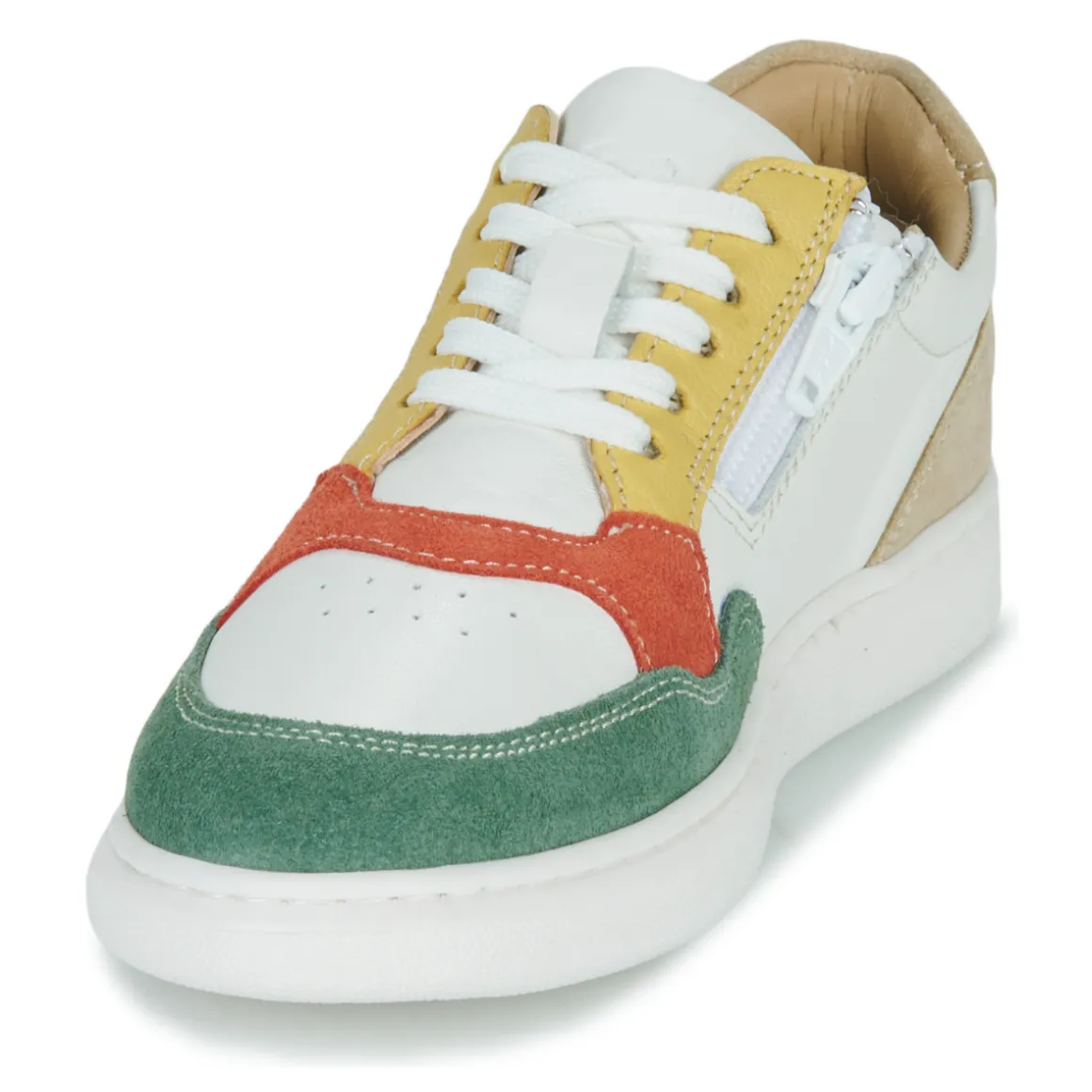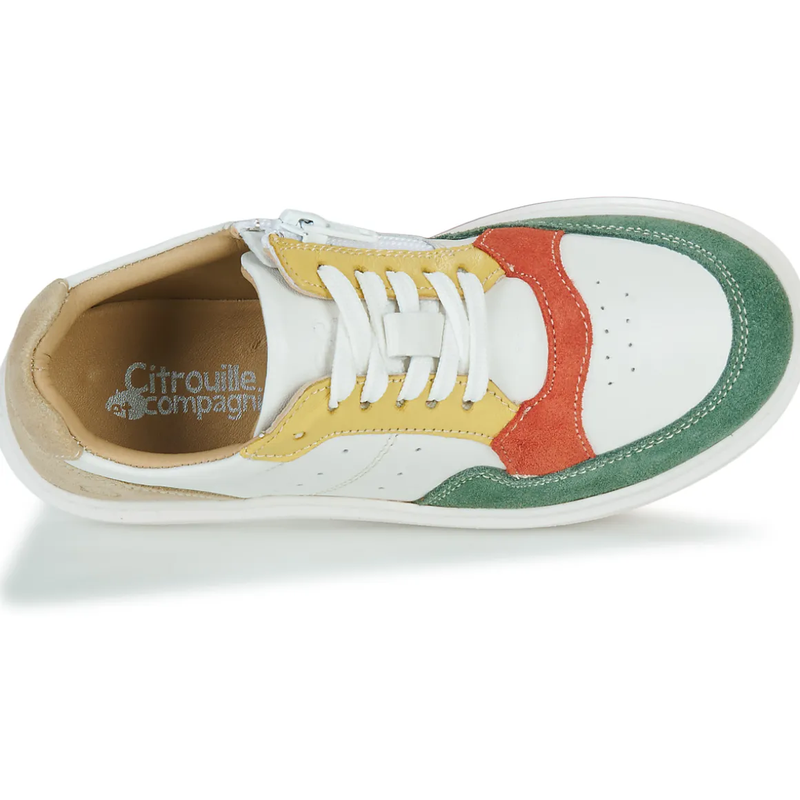 Star des villes, la basket basse Citrouille et Compagnie s’invite chez les plus jeunes. Avec son dessus en cuir bovin et son coloris vert, elle se veut aussi confortable que tendance. Une semelle en synthétique et une doublure en cuir ovin contribuent au succès de ce phénomène. Un modèle qui comblera les kids !
