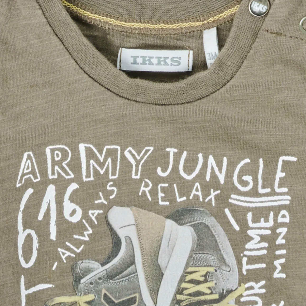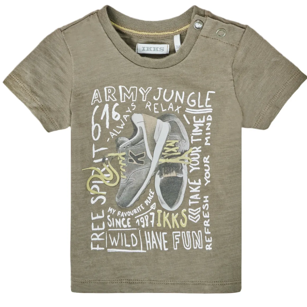 Ce T-shirt à manches courtes annonce la couleur de par son look : on est chez Ikks !Ce modèle kaki est juste parfait n’est-ce pas ?Nos petits monstres l’adoreront !