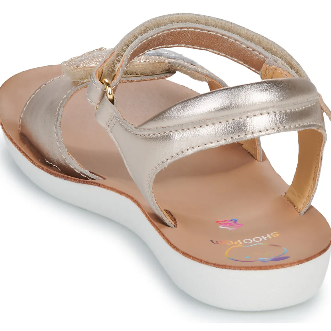 Les petites têtes blondes (et les brunes aussi) seront ravies de passer l’été dans cette sandale Shoo Pom de couleur dorée. Muni de brides en cuir et textile et d’une semelle en caoutchouc, ce modèle se présente comme un véritable allié des journées ensoleillées. Très agréable à porter, cette chaussure combine les avantages d’une semelle de propreté en cuir et d’une doublure en cuir. Avec elle, l’aventure est à portée des petons !