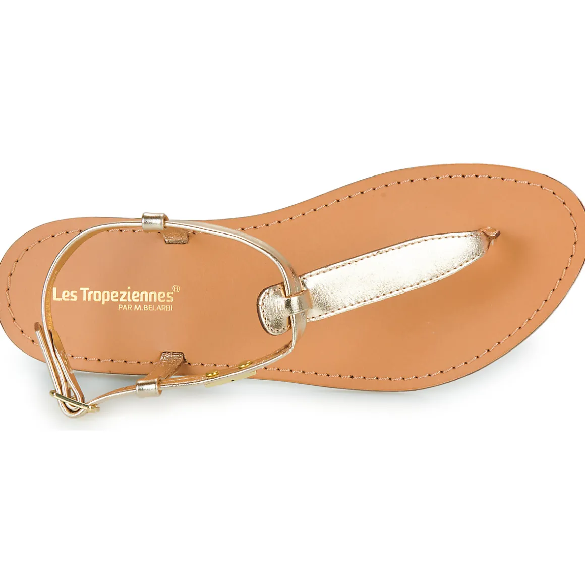 Cette sandale Les Tropéziennes par M Belarbi de couleur dorée est idéale pour se prélasser tout au long de l’été, que ce soit à la terrasse d’un café ou en bord de mer. Avec sa semelle en synthétique et ses brides en cuir de vachette, elle a les arguments pour séduire. De quoi avancer au cœur de l’été du bon pied !