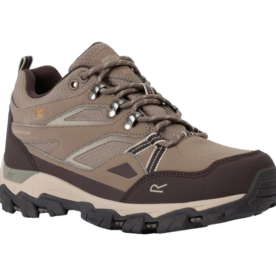 Regatta – Chaussures de marche HOLCOMBE – Femme. Design/motif: Logo. Style du bout: Arrondi. Talon: Plat. Fermeture: À lacets. Caractéristiques: Crans angulaires, Respirant, Résistant, Col rembourré, Languette rembourrée, Protection anti-boue en PU, Boucle pour enfiler, Se débarrasse de l’eau et des débris, Embout aux orteils. Caractéristiques des matériaux: Technologie hydropel (résistant à l’eau), Isotex (imperméable, tête hydrostatique 3 000 mm et respirant), Antihumidité, Anti-éclaboussures, Imperméable. Caractéristiques des semelles: IEP. Dessus: Faux nubuck, Polyester, PU (polyuréthane). Semelle intérieure: Rembourrée, EVA, Moulée en EVA, Semelle intérieure recouverte de mousse respirante, TECFOAM. Semelle extérieure: Adhérente, Résistante, Caoutchouc, Anti-dérapante. Ref: UTRG11302