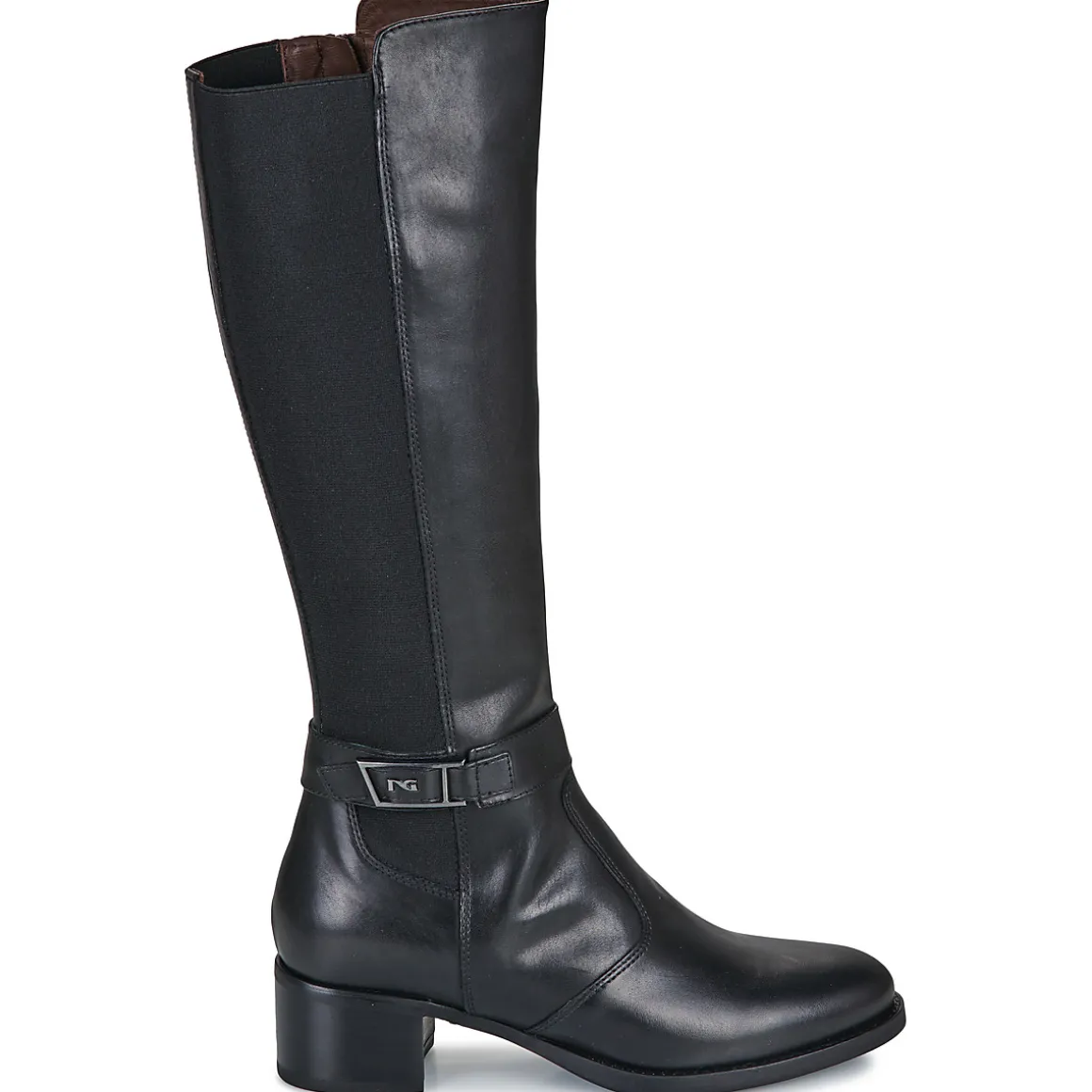 NeroGiardini a créé la botte de ville I514643d-100 pour les modeuses à la recherche d’un modèle tendance. Une tige en cuir et textile et un coloris noir signent les valeurs esthétiques de la marque. Elle combine également une doublure en cuir et une semelle en synthétique. On n’aime pas… On adore !