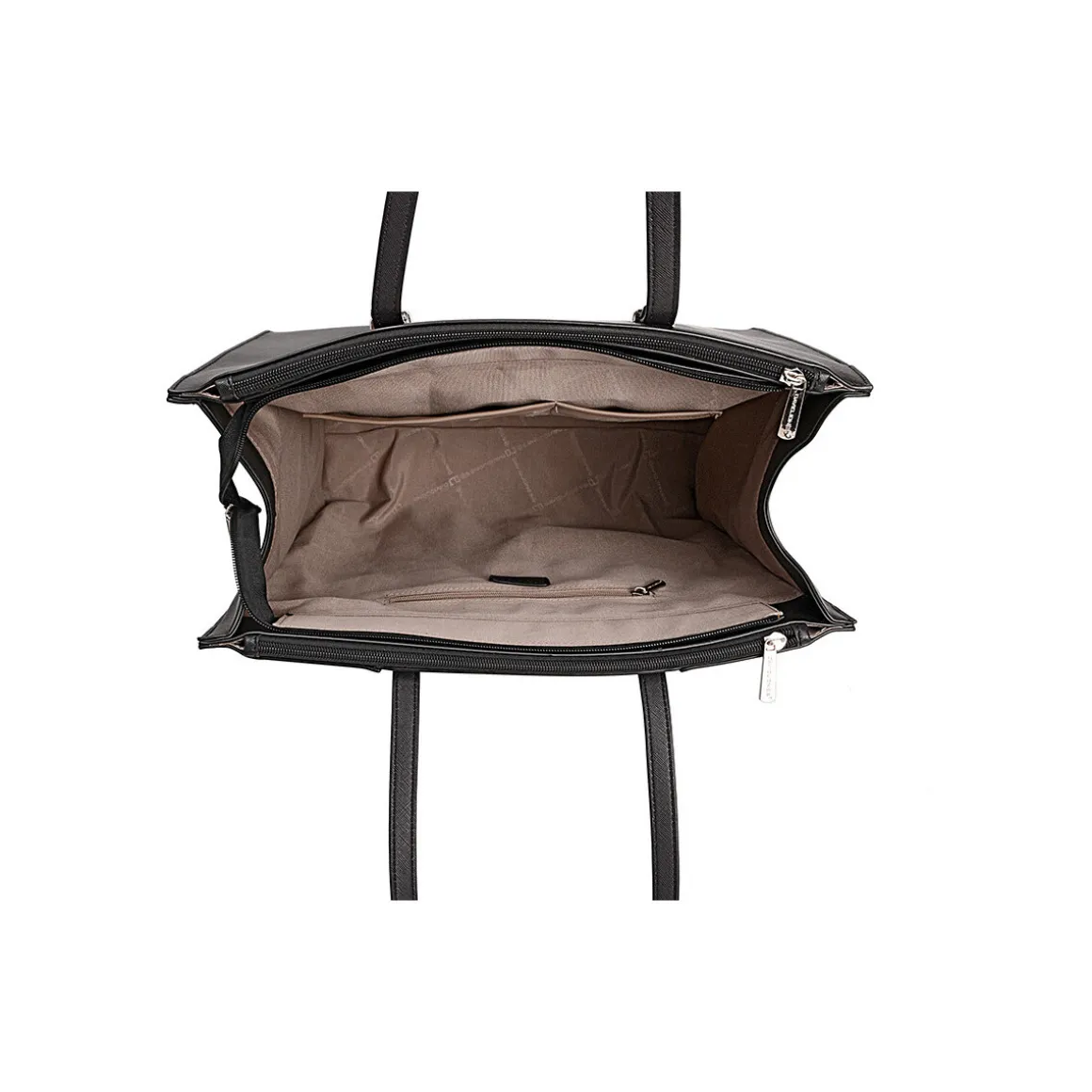 *DIMENSIONSLongueur : 39 cmHauteur : 30 cmProfondeur : 15 cm*CARACTERISTIQUES PRINCIPALESMatiere : Similicuir effet saffiano, elegant et structureFermeture : Fermeture eclair centrale pour le compartiment principalCompartiment : Grand compartiment central, compatible format A4Poches :Une poche interieure zippeeUne poche interieure plateUne poche exterieure arriere plateDeux grandes poches laterales zippeesPorte : Double anse pour un porte epaule confortable*DESCRIPTIONGrand cabas format scolaire, parfait pour vous suivre toute la journeeVous pouvez y glisser aussi bien vos dossiers que vos effets personnels