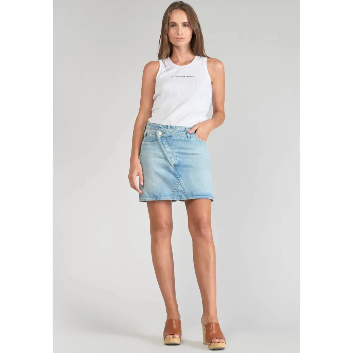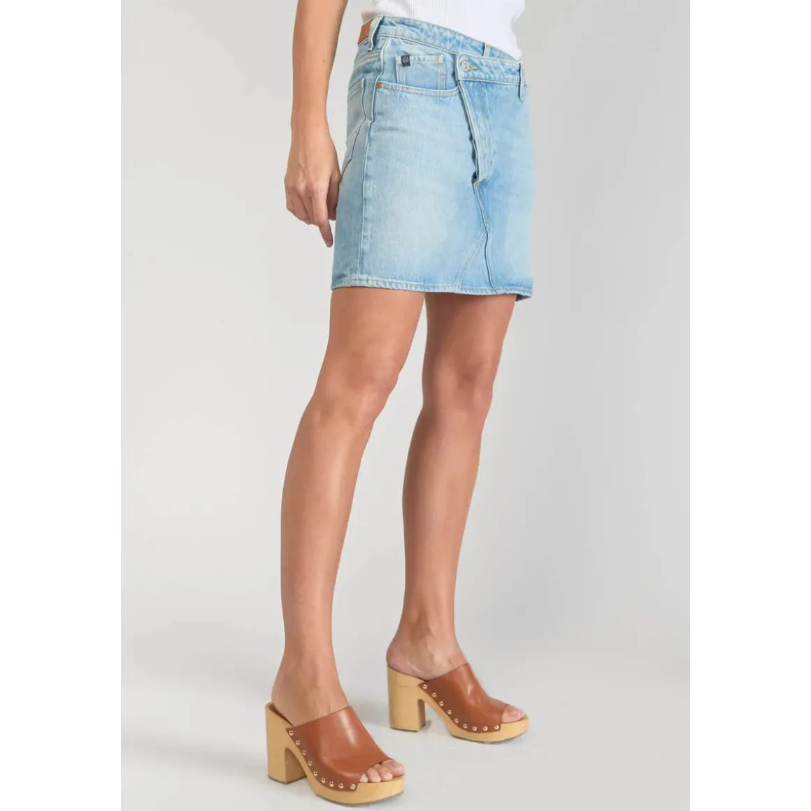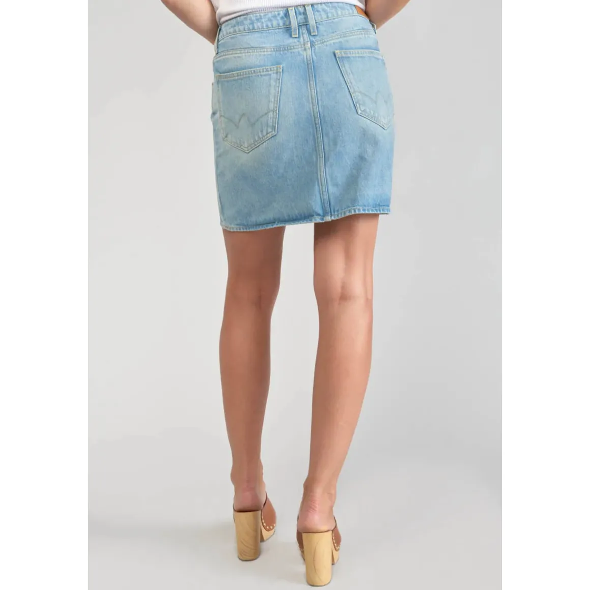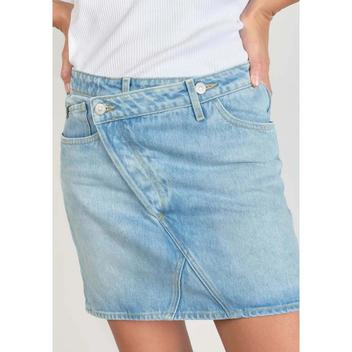 – Courte- Coupe : droite- Hauteur de taille : standard- Type de fermeture : boutonnée- Tissu : jeans- Motif : uni
