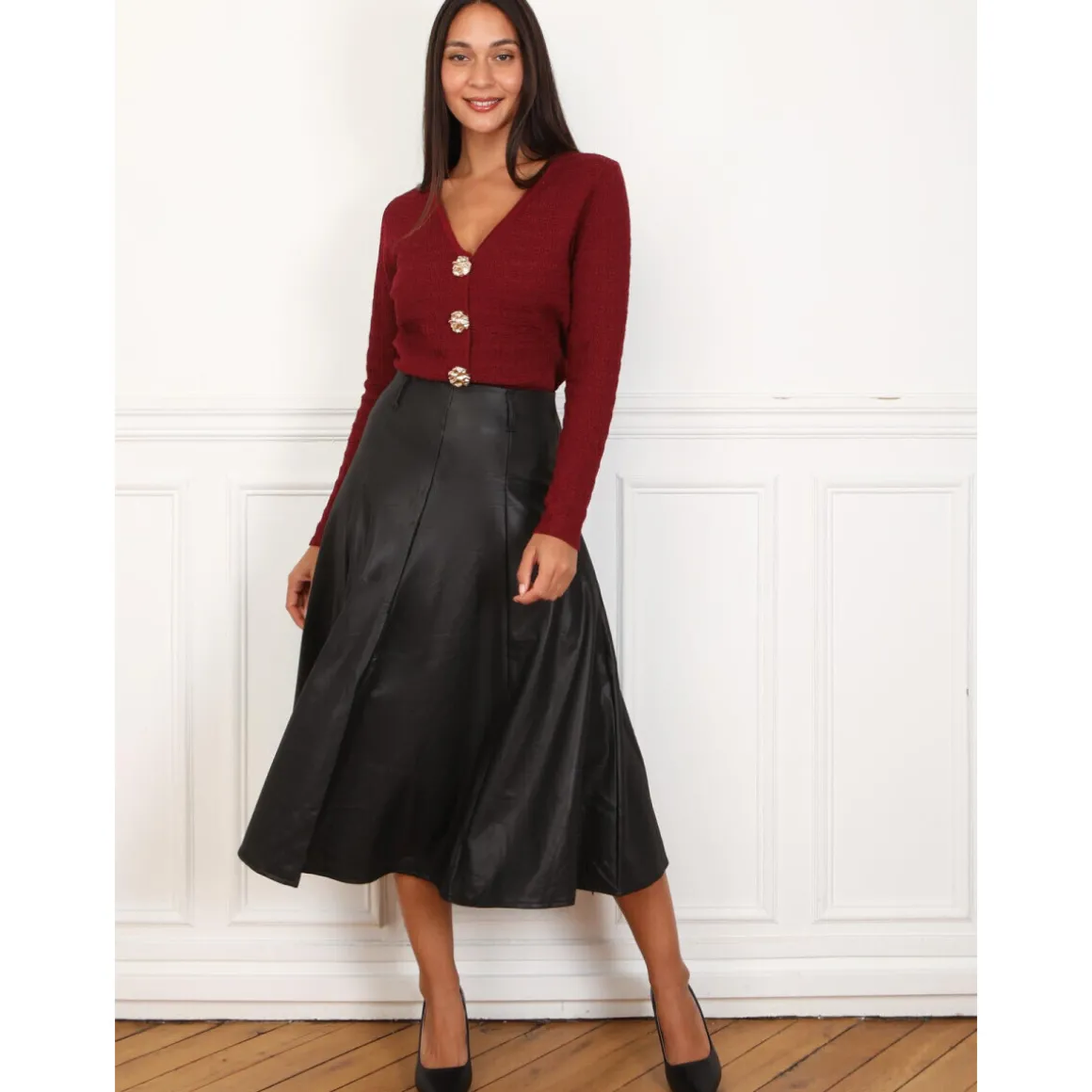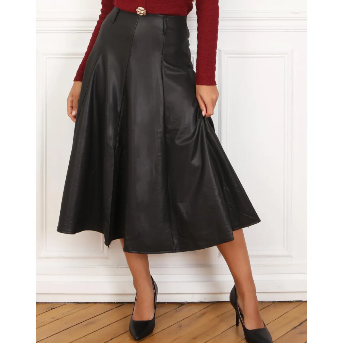 Jupe mi-longue évasée avec fermeture zippée dans le dos.Doublure chaude.