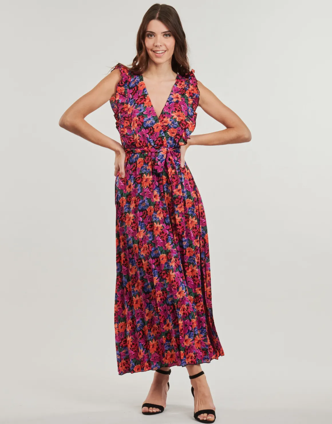 Longue vie à cette robe fluide Kaia que l’on doit à Moony Mood. Des fleurs, des fleurs et encore des fleurs, une belle réunion de couleurs, des détails volantés et son sublissime col V font la réussite de cette tenue parfaite pour l’été !