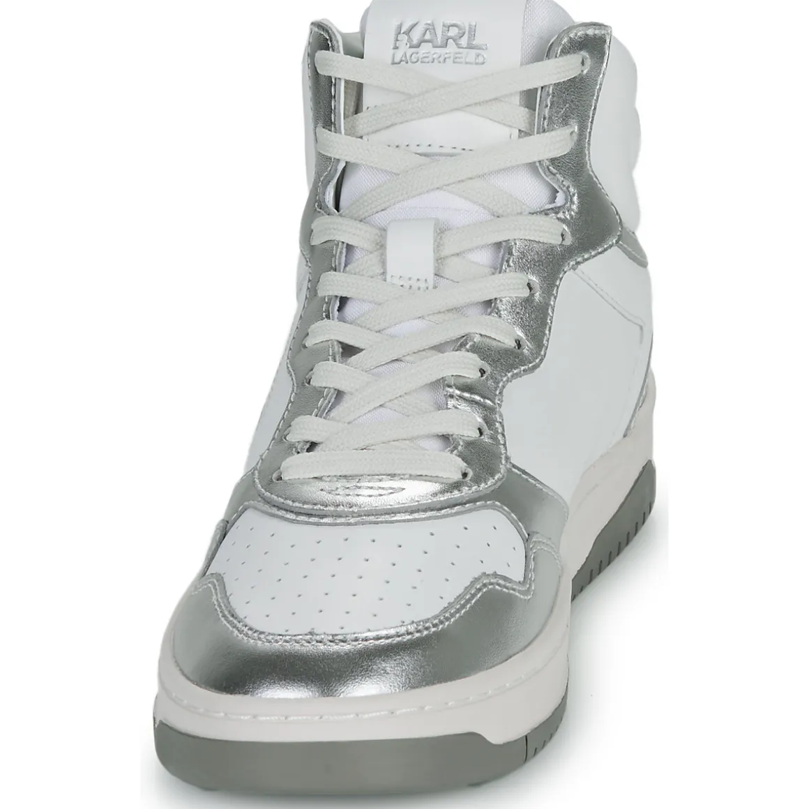Cette basket montante Karl Lagerfeld, c’est le tout nouveau modèle qui fait du bruit dans le cercle très prisé des sneakers addicts ! Une tige en cuir et textile et une couleur blanche : c’est le tandem gagnant qui y réside. Montée sur une semelle en caoutchouc, elle renferme une doublure fabriquée en synthétique et textile. Un modèle qui deviendra sans aucun doute une icône de la collection en cours.