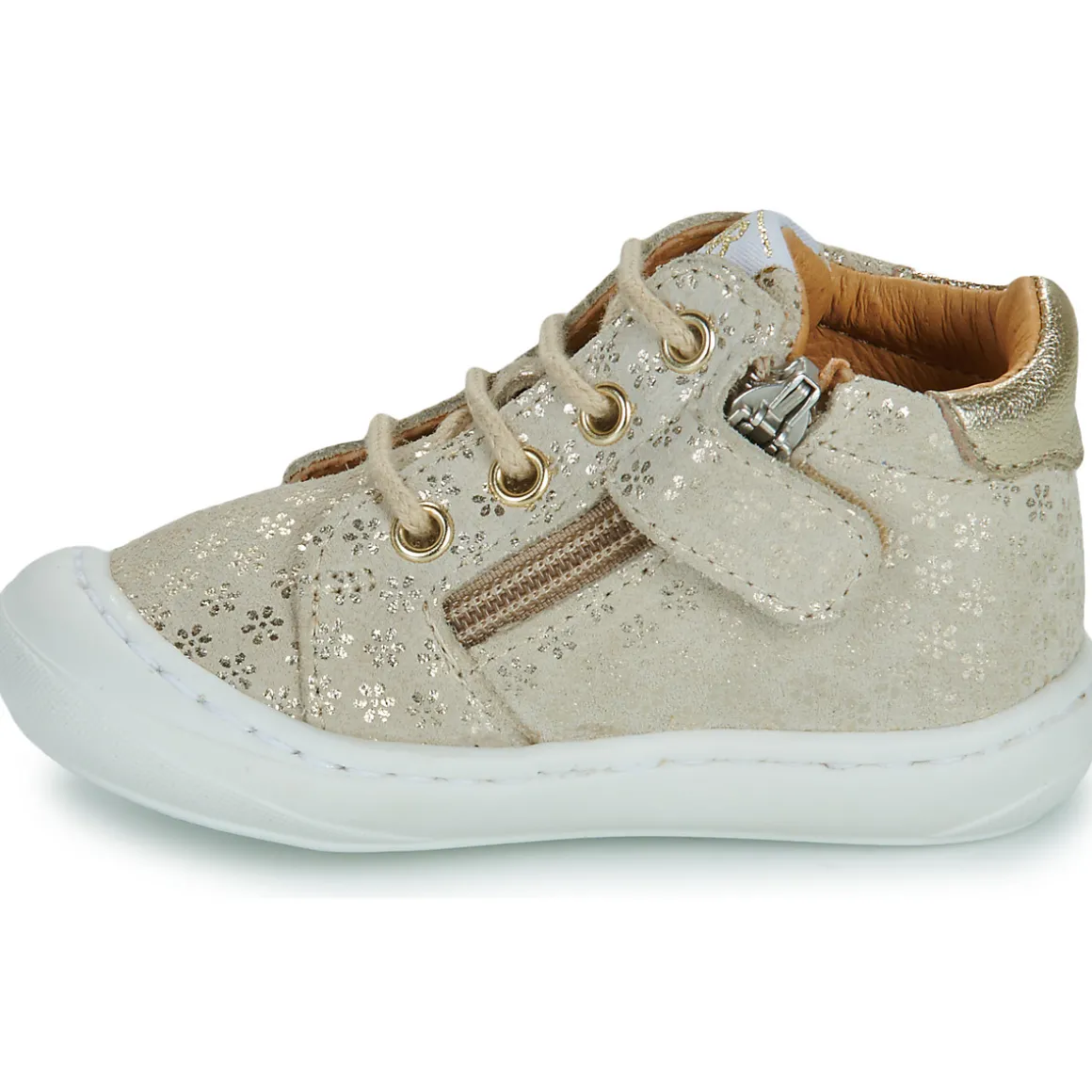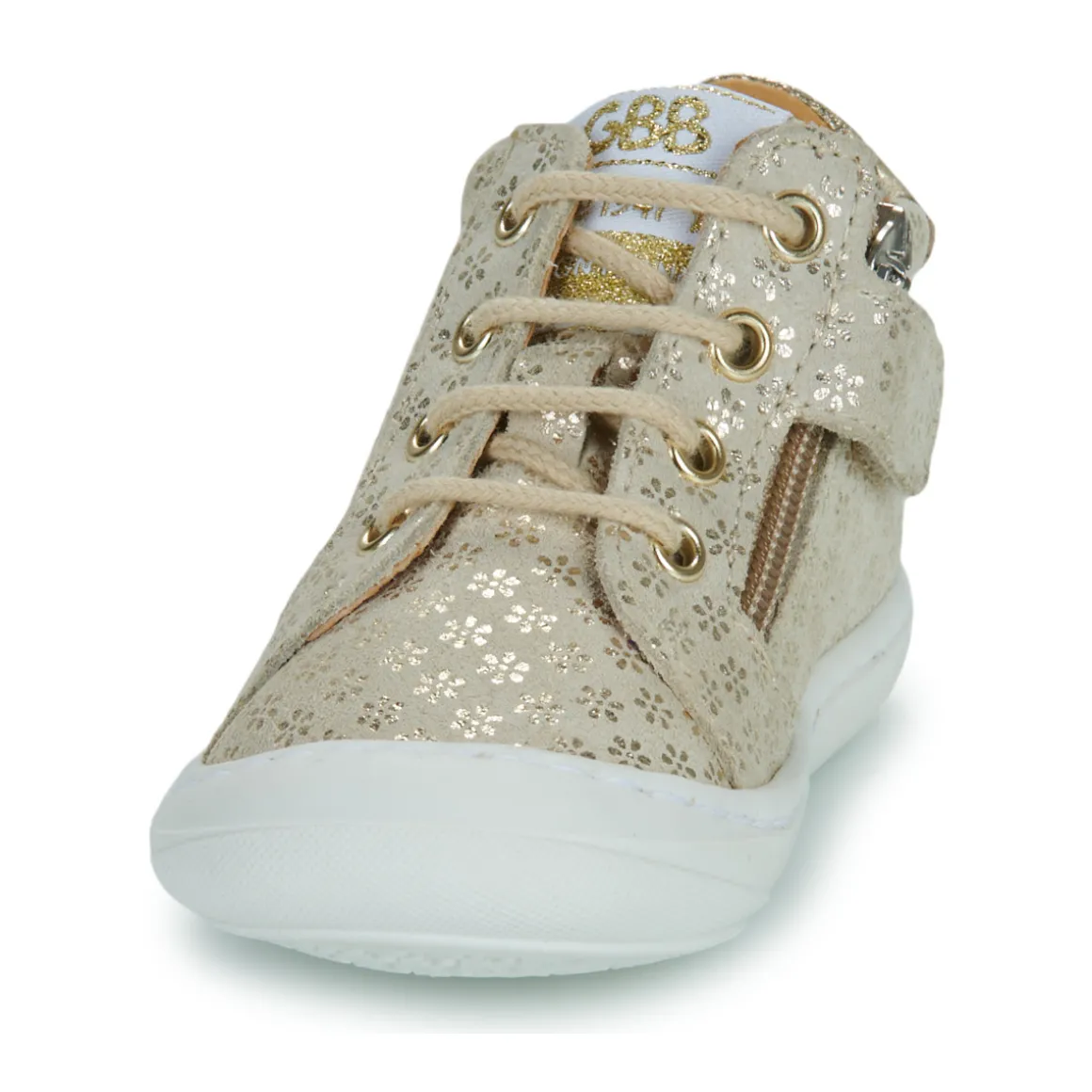 Chaussure flex, particulièrement souple / Semelle amovibleConstruction de la chaussure pensée spécifiquement pour accompagner les premiers pasContrefort asymétrique : empêche le pied de dévier de sa surface d’appui en le maintenant dans l’axe de la marcheArrière ergonomique et emboîtantRenfort avant pour protéger les orteils des chocsRenfort en mousse à l’arrière pour protéger les molletsSemelle antidérapanteSystème de serrage par laçage permettant au talon de rester en place, et donc d’éviter la crispation des orteils.Une fermeture zippée permet de chausser la chaussure plus rapidement. Elle est maintenue fermée grâce à une patte velcroProduit certifié sans produits nocifs par la charte Innoshoe, comme l’ensemble des chaussures GBB.