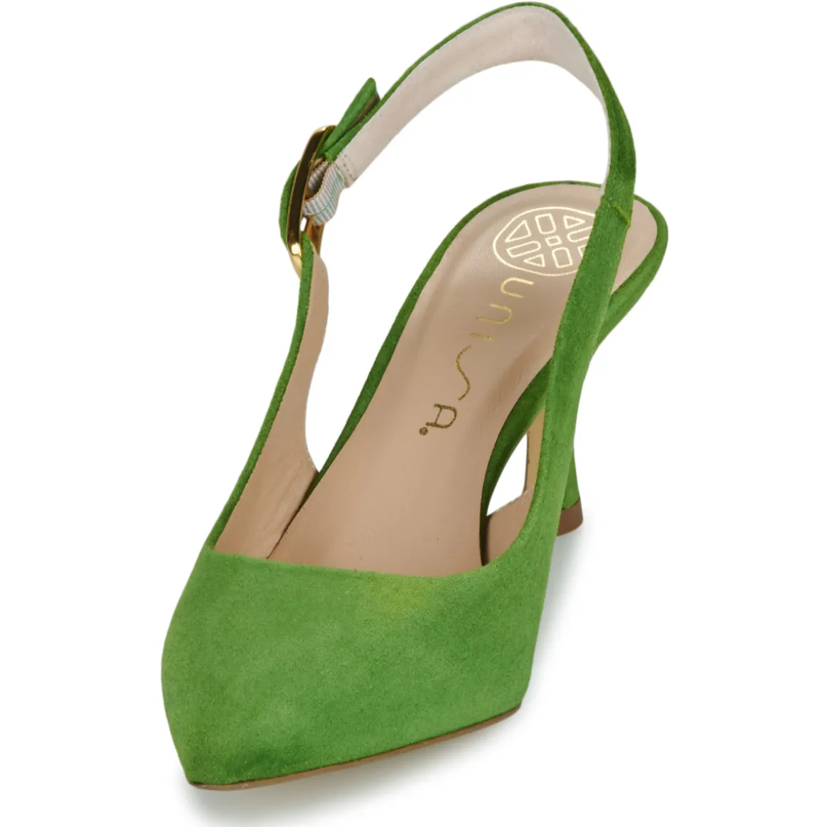 Quelle que soit votre tenue, elle s’accordera parfaitement avec l’escarpin Lanz de chez Unisa. La marque a opté pour une tige en cuir de couleur verte qui saura facilement mettre en valeur votre look. Son talon de 7 cm se définit comme divinement haut et ce n’est pas pour nous déplaire. Rien qu’à le regarder, on se sent comblée.