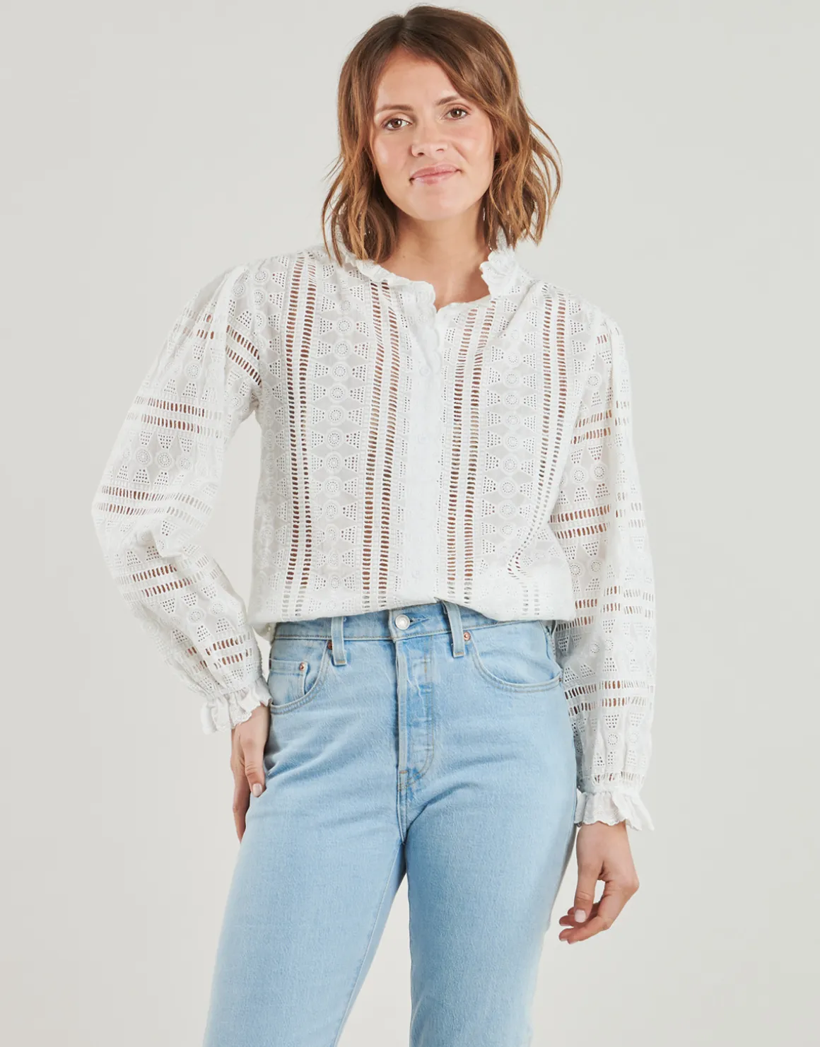 Légèrement ajourée, avec un jeu de transparence cette blouse Lucianna nous a tapé dans l’œil. Signée Betty London, cette blouse entièrement en coton rivalise de légèreté et de confort, quand ses détails volantés font mouche !