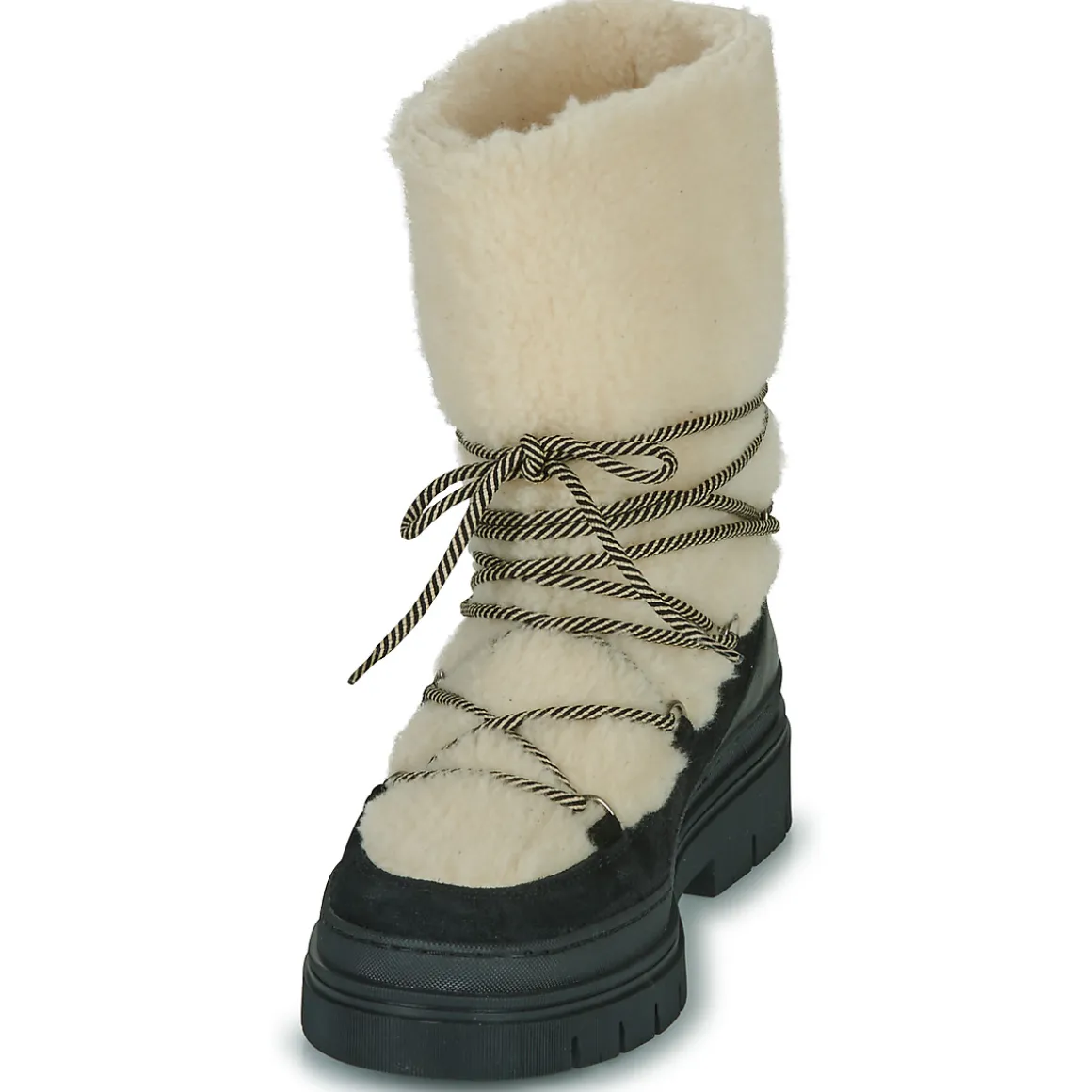 L’aventure polaire est à la portée de vos pieds grâce à cette botte de neige Betty London. Plus seulement cantonnée aux stations de sport d’hiver, elle se pare d’une tige imperméable en daim noir. Grâce à sa semelle antidérapante en synthétique, le verglas et la neige passeront de terrains dangereux à terrains de jeux !