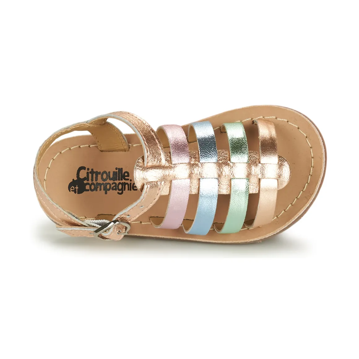 Voici l’un des tous nouveaux succès de Citrouille et Compagnie en matière de sandale ! La Mayana deviendra rapidement leur paire de chaussures préférée, notamment grâce à sa semelle en synthétique et ses brides en cuir. Vos pieds sont à l’aise grâce à sa semelle de propreté en cuir et sa doublure en cuir. De quoi avancer au cœur de l’été du bon pied !