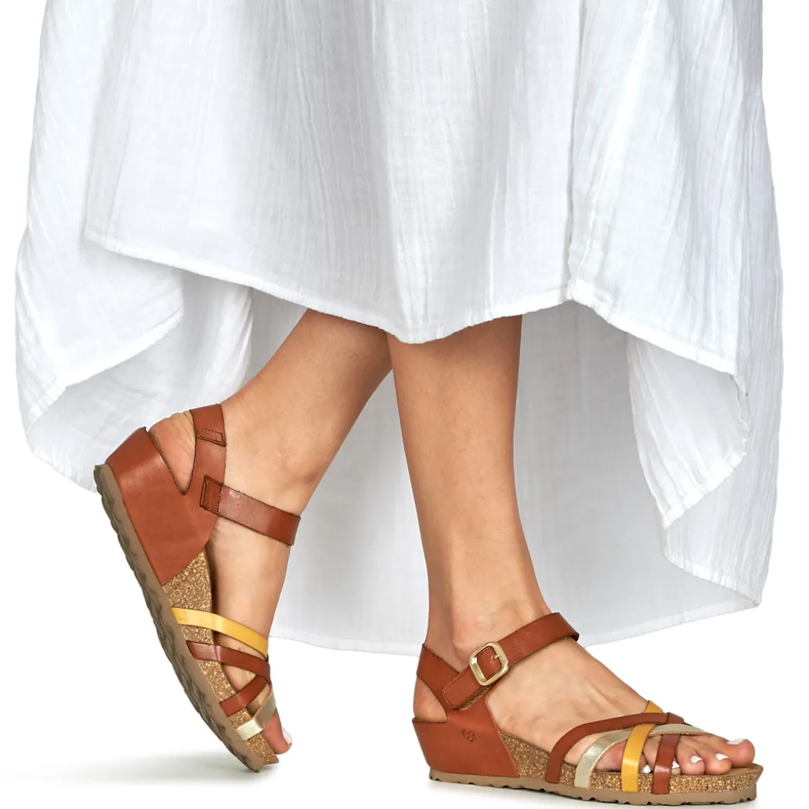 Beaucoup d’allure et de désinvolture pour ce nu-pieds YOKONO de couleur multicolore. On en connait qui deviendront vite fan de ses brides en cuir et de sa semelle en synthétique. Très agréable à porter, cette chaussure combine les avantages d’une semelle de propreté en croûte de cuir et d’une doublure en . Il ne vous reste plus qu’à chausser son talon de 4 cm pour un style haut en féminité.