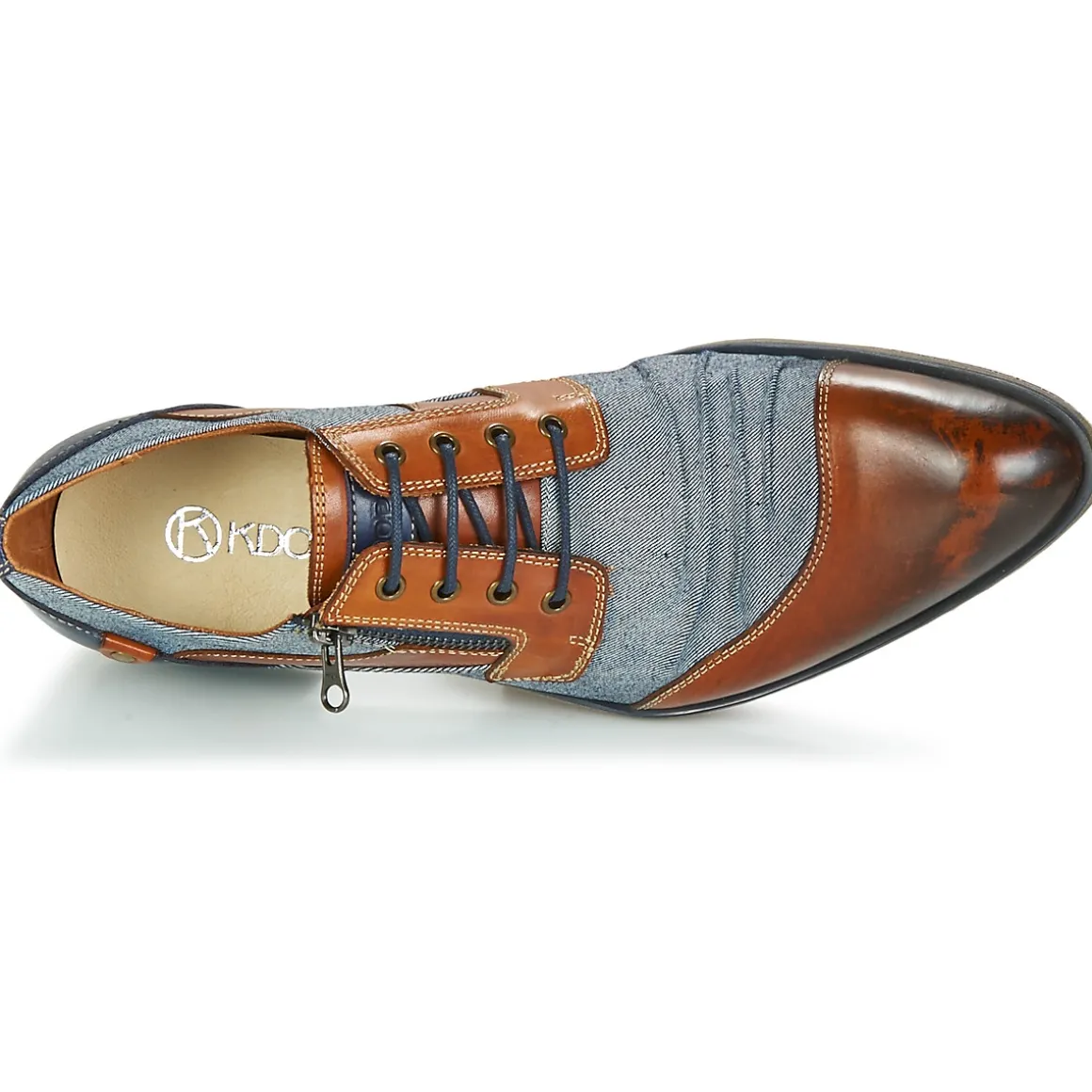 Allure masculine et élégance revendiquée pour ce derby présenté par la marque Kdopa.Son coloris marron et bleu permet de l’associer aisément à nos tenues vestimentaires.Avec une tige en cuir et une semelle en caoutchouc, la marque garde la qualité au cœur de ses préoccupations. Avec tout cela, il attisera les envies de ces messieurs !