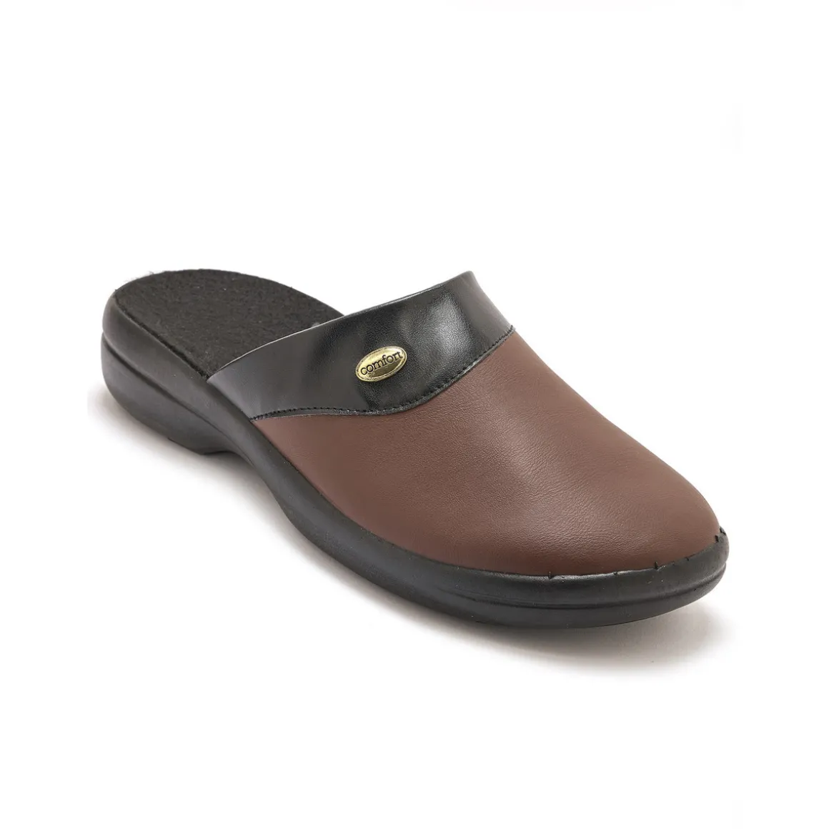 Dessus cuir bicolore. Doublure intérieure toute douce en éponge 100% polyester. Relief anatomique avec talon cuvette pour bien caler le pied. Semelle élastomère compensée, ultra légère et très résistante. Grande largeur.