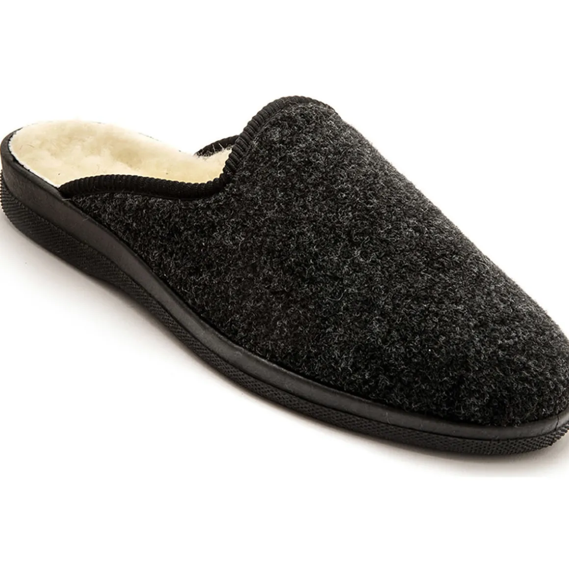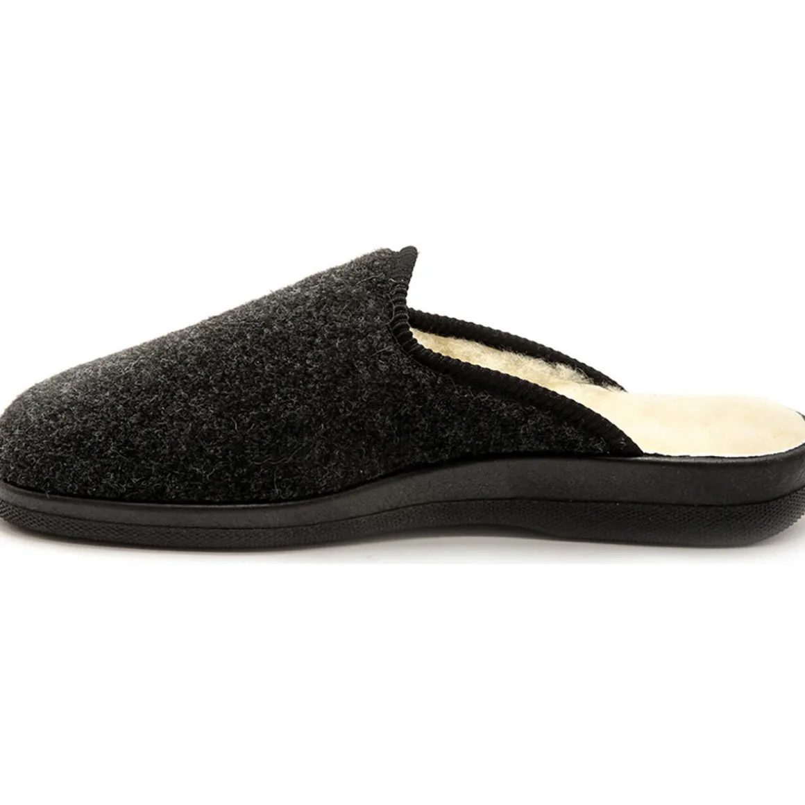 Les mules mixtes fourrées laine majoritaire. Dessus : textile. Semelle : élastomère. Grande largeur. Fabriquées en Europe.